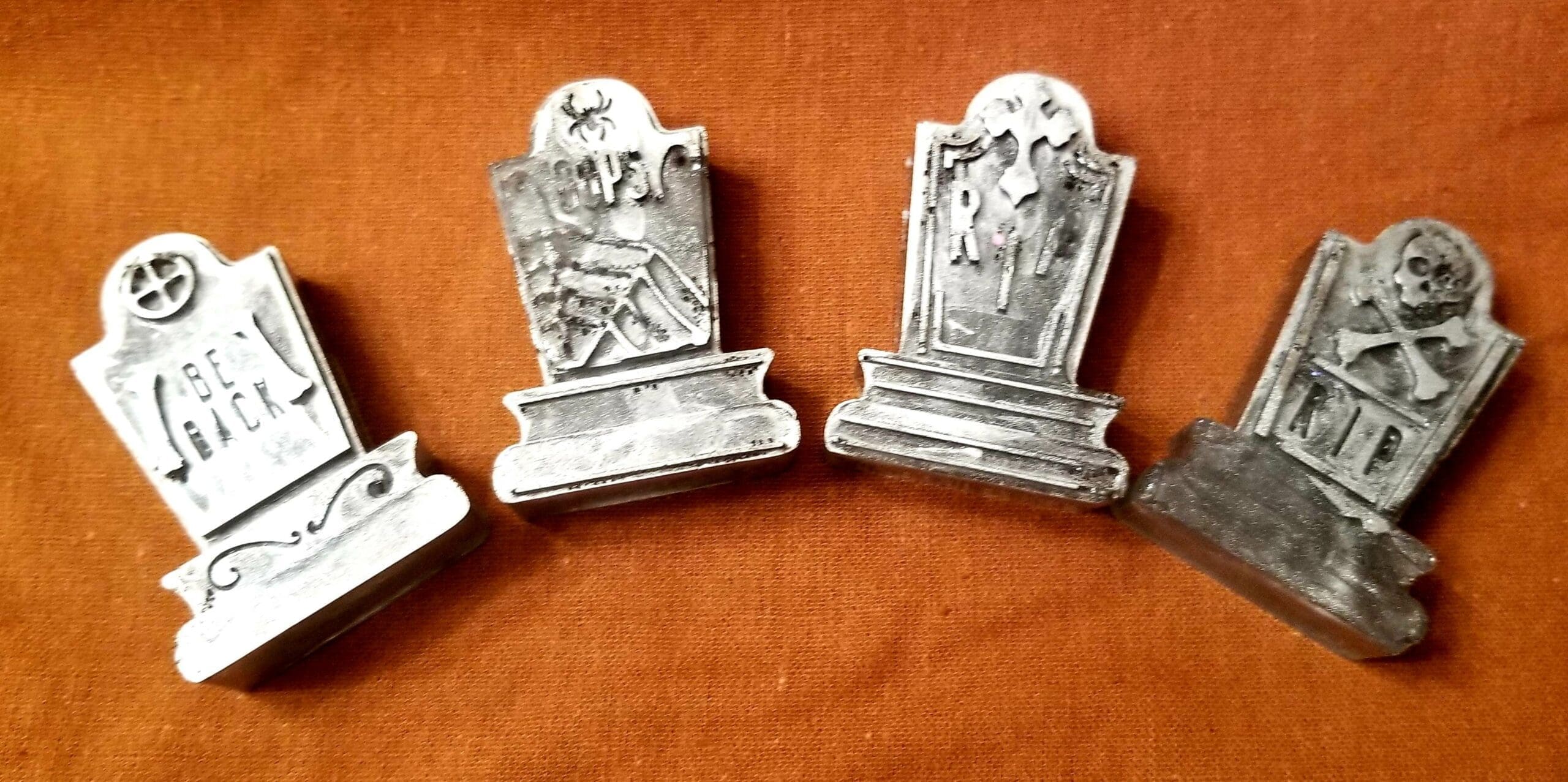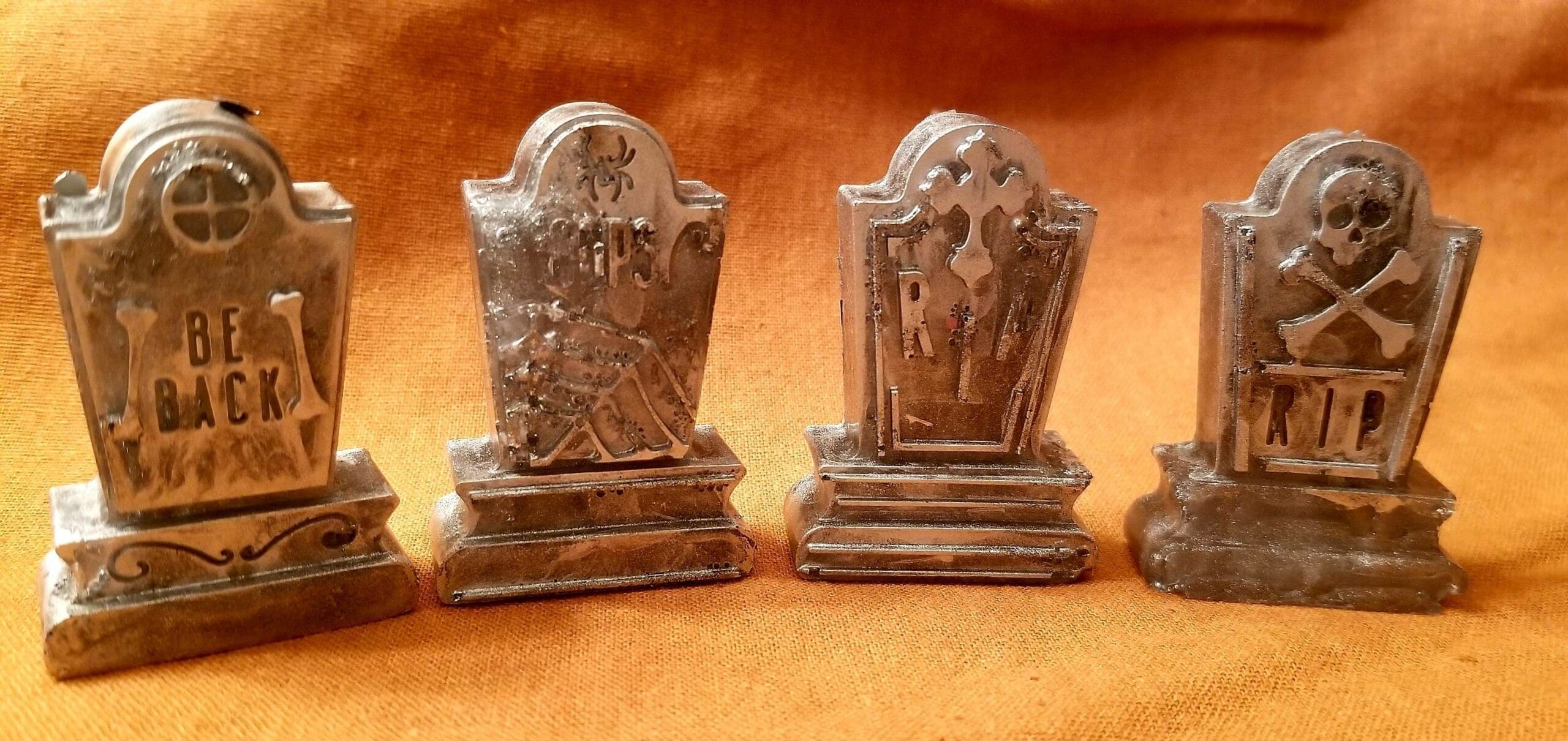 Made entirely of Epoxy resin. Each gravestone is a mixture of grey and silver.