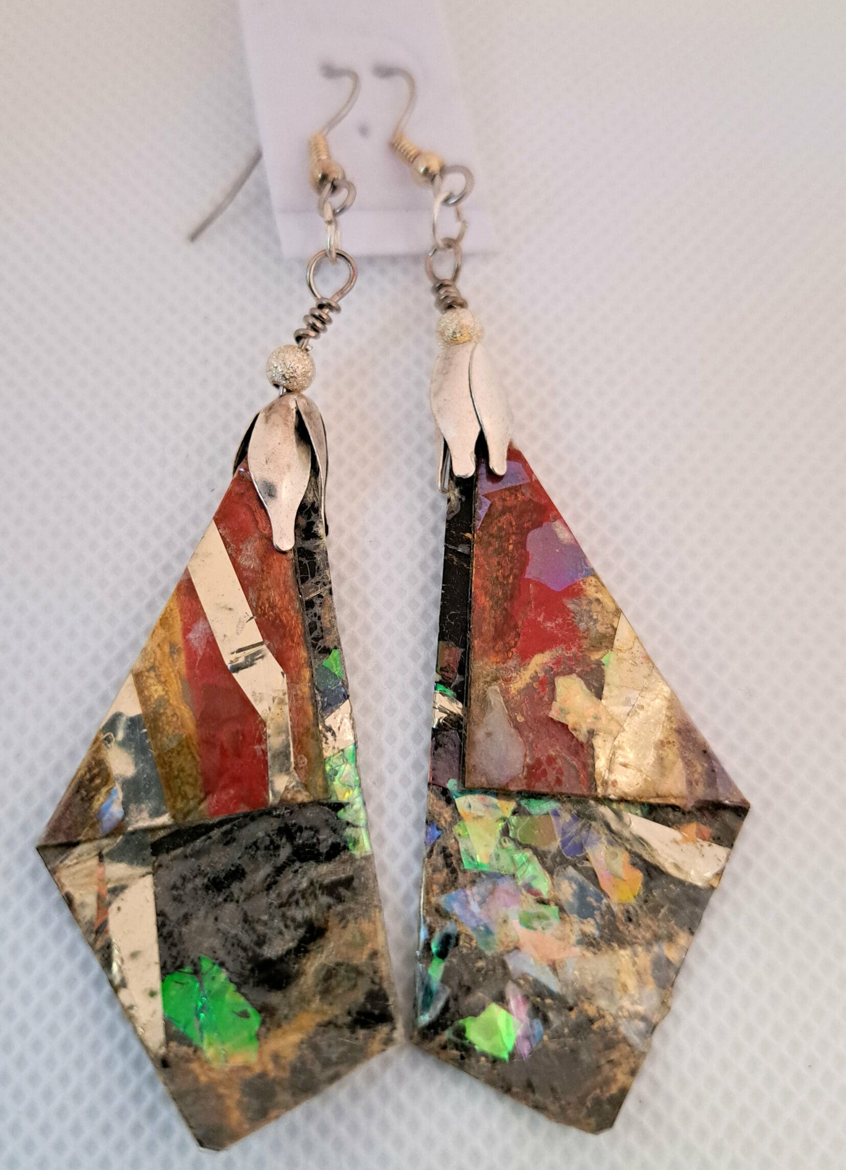 These unique earrings are lightweight and measure 3-1/2″ long from the earring.