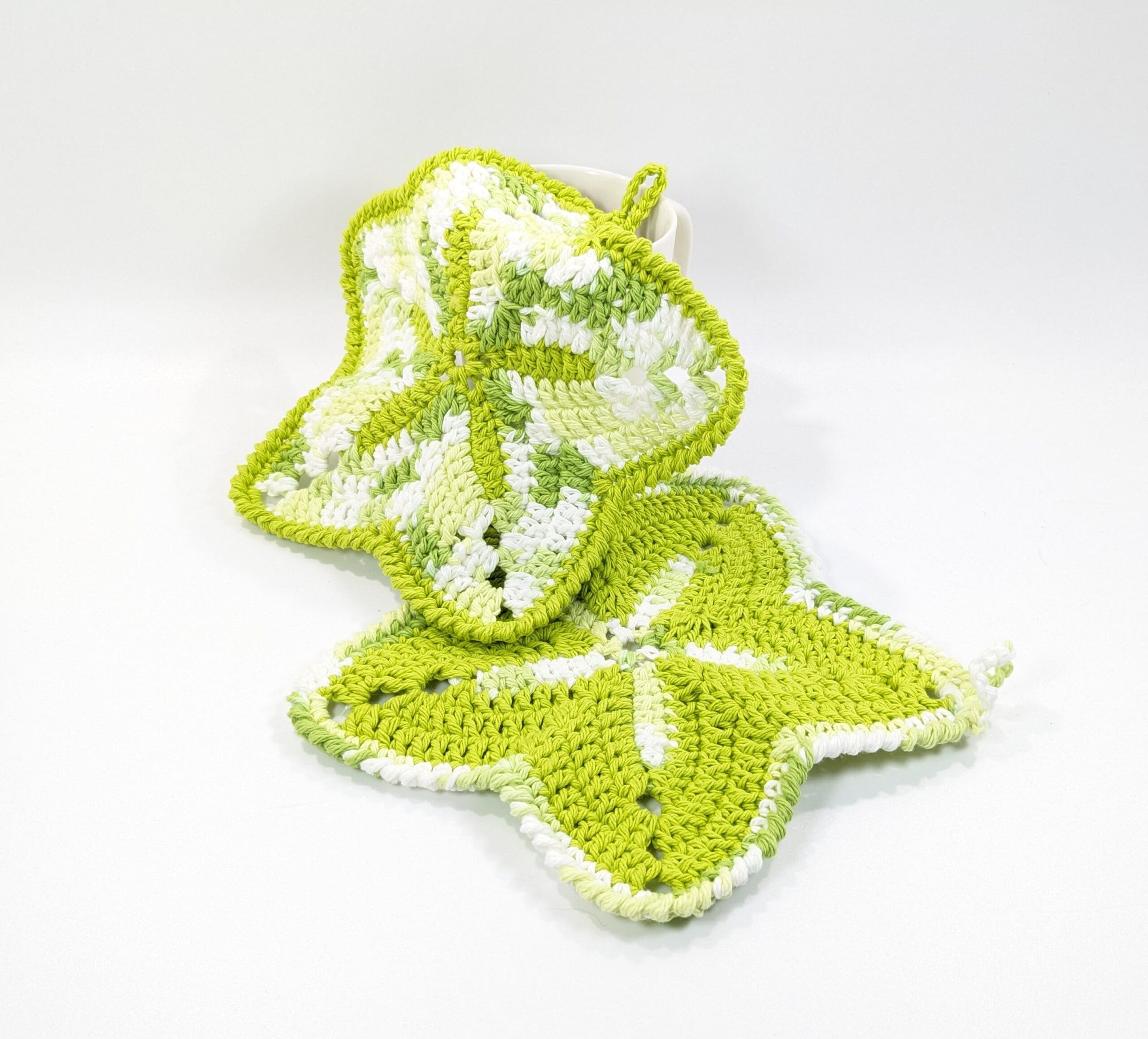Multi-Purpose Sea Green Cloths. You get a set of two crochet cotton cleaning cloths. Use to wash dishes, pots and pans, counters and table top. Get a set to clean you bathroom tub, shower walls, sink and counter. Also great for dusting, cleaning windows and mirrors. Get a set to clean your car inside and out.