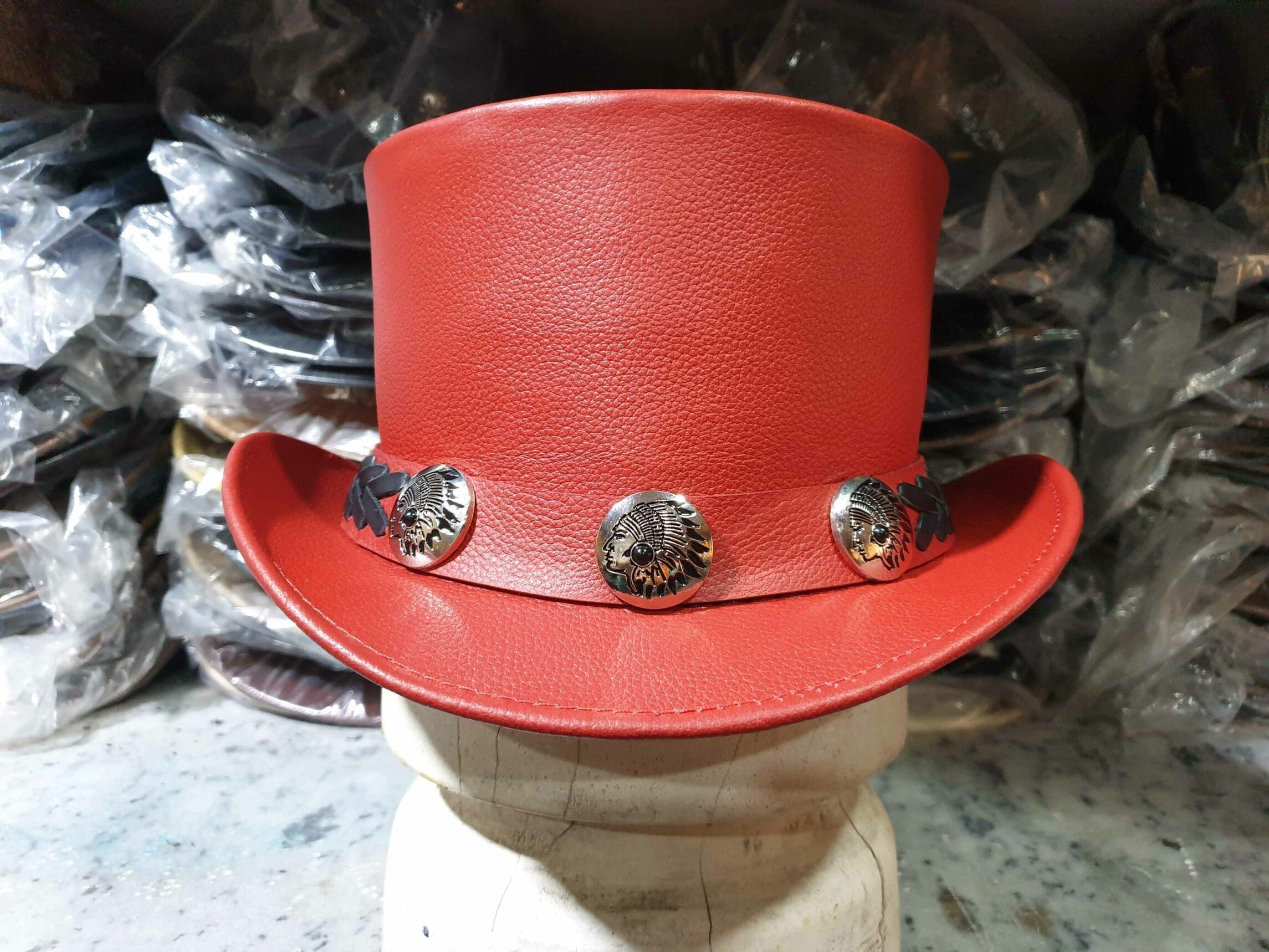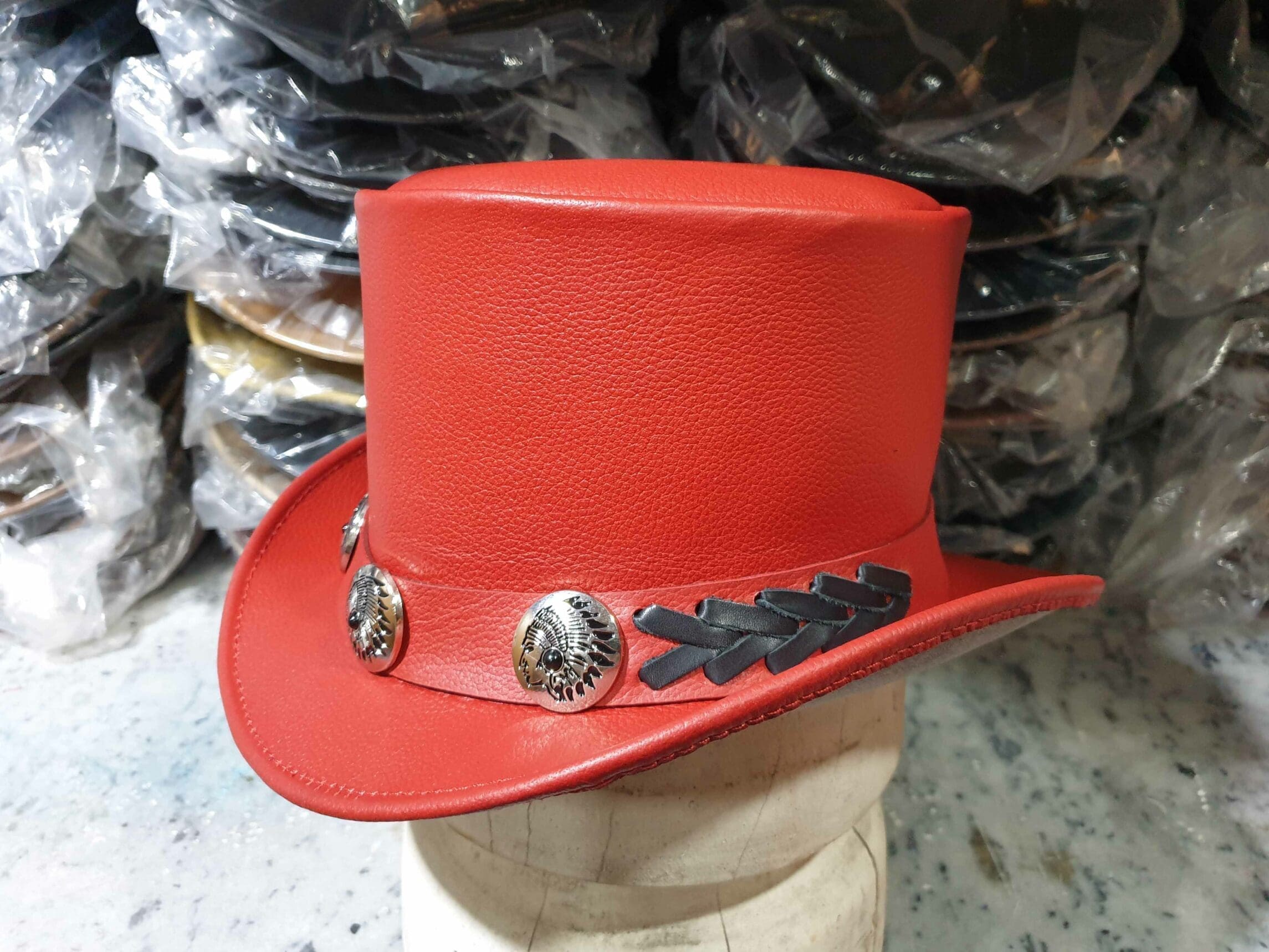 Specification: Native Indian Hat Band Red Leather El Dorado Top Hat