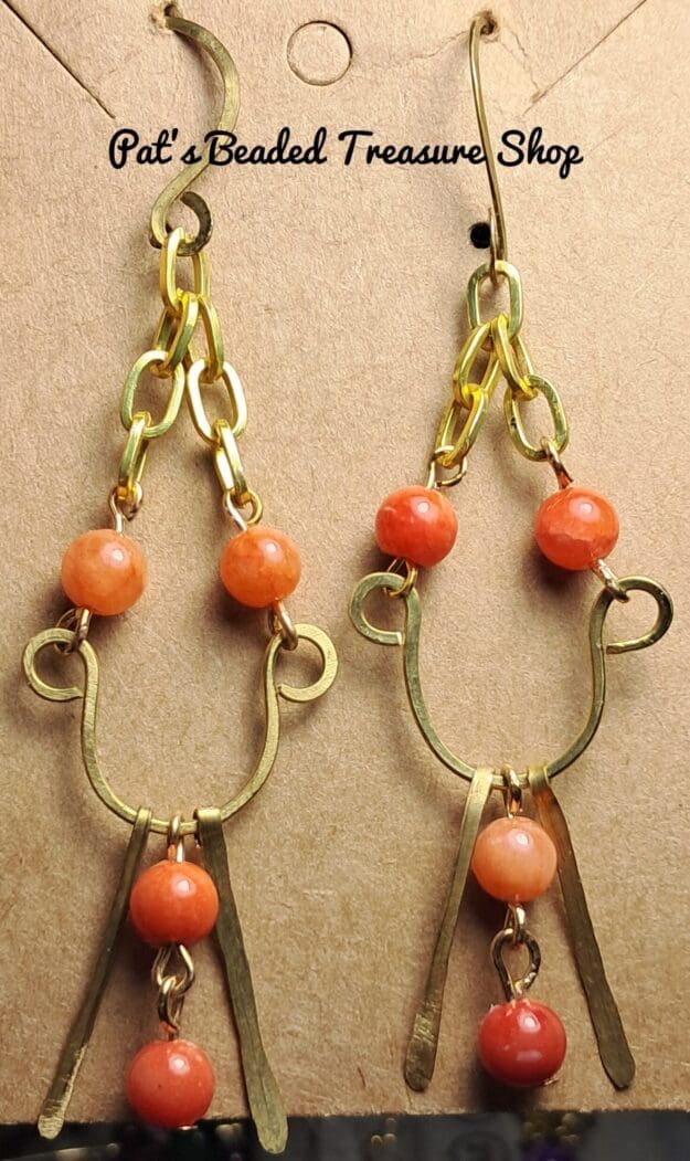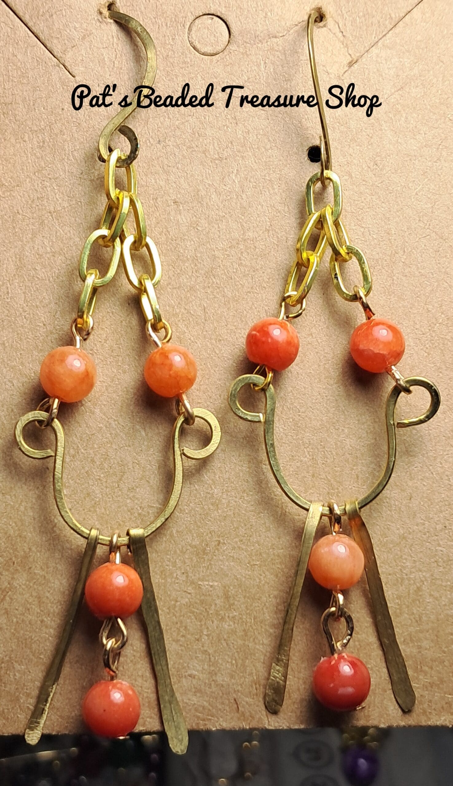 Vibrant handcrafted earrings featuring warm orange beads, smooth gold-tone chain, and elegant non-tarnish gold wire. Lightweight, stylish, and full of lively color.