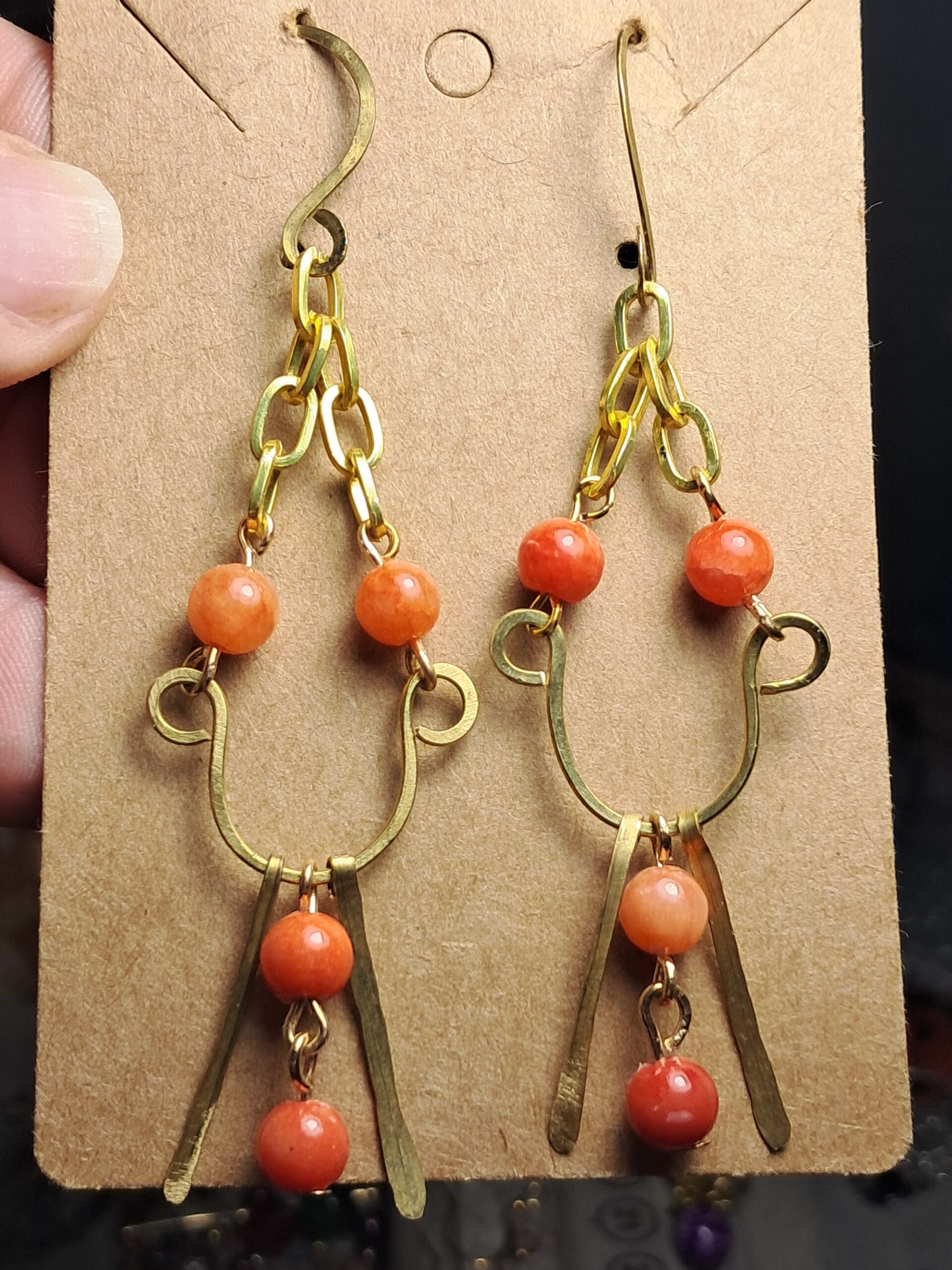 Handcrafted Orange Bead Dangle Earrings – Non-Tarnish Gold Wire