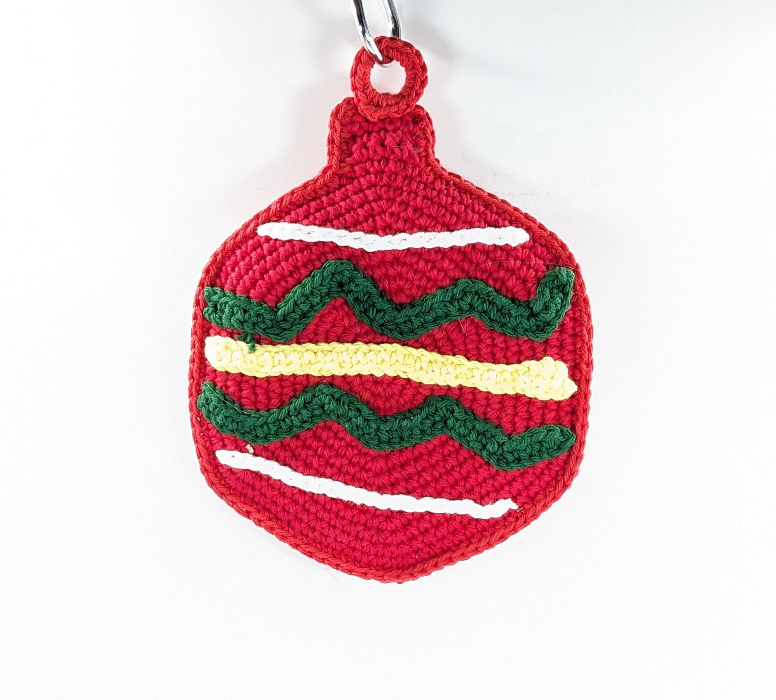 Ornament Potholder Crochet Red Hot – Pad. You get this cute potholder that looks just like a tree ornament. Also it makes a great hot-pad. You can hand it up and use just as a decoration. Also this Ornament measure 7 inches by 9 inches. You can find a fun selection of Christmas items in my shop, link below.