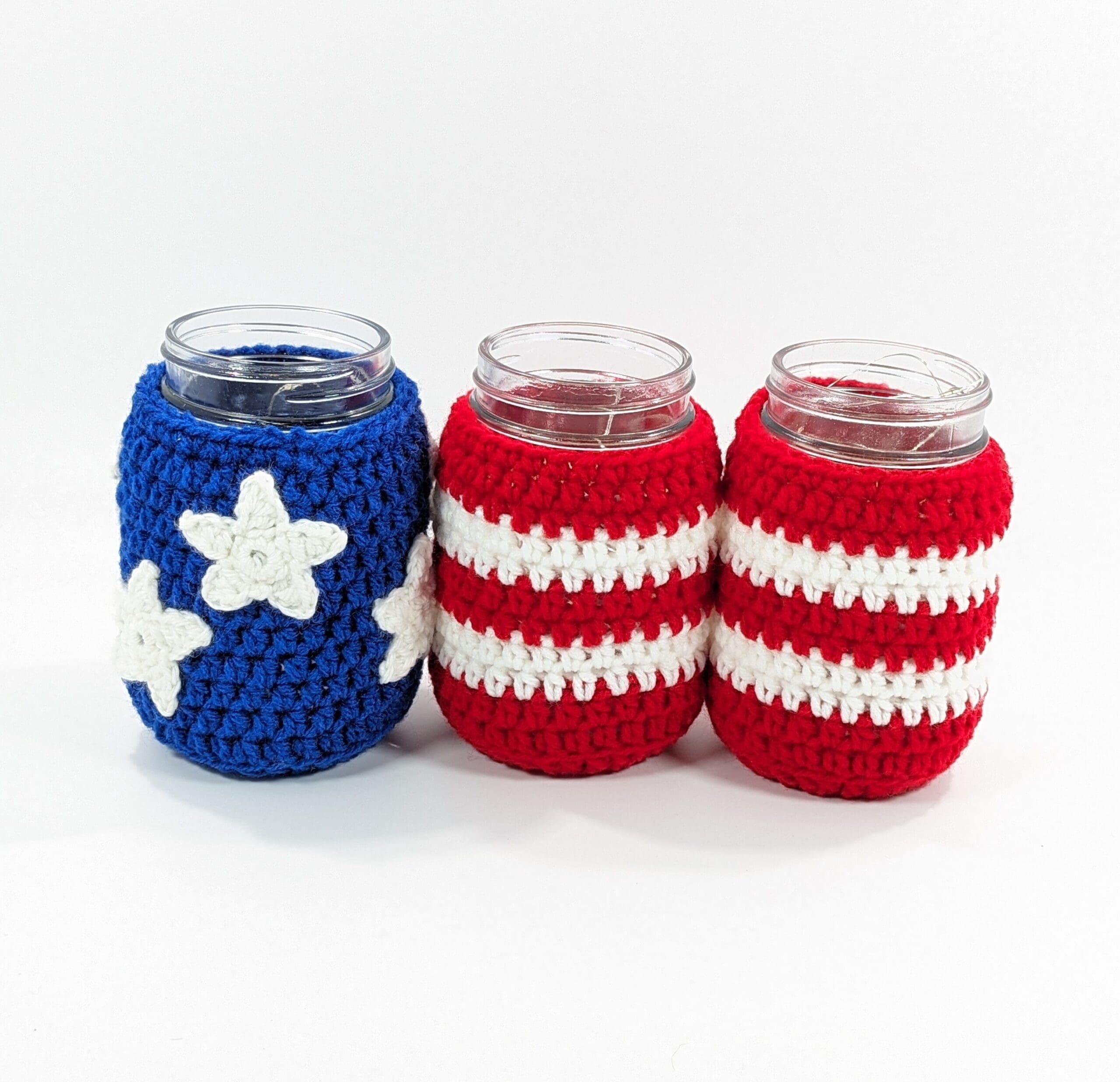 Patriotic Crochet Mason Jar Cover Set