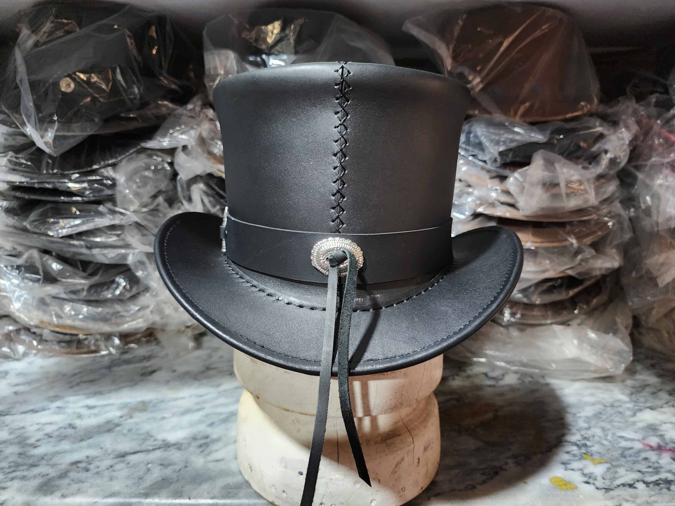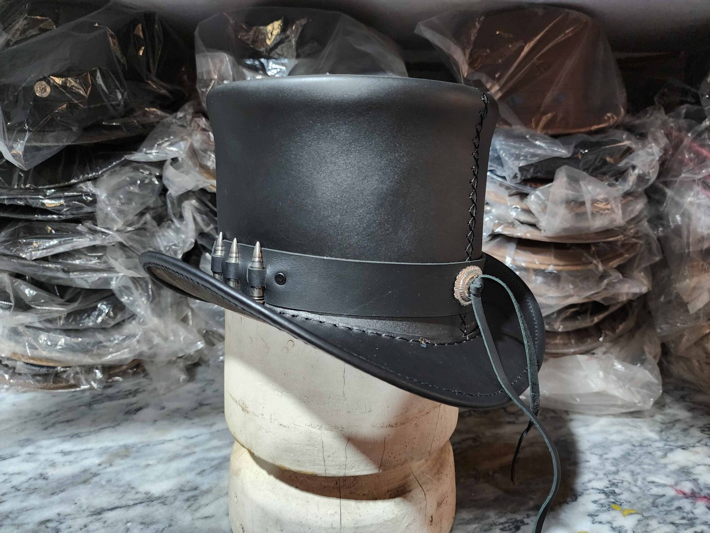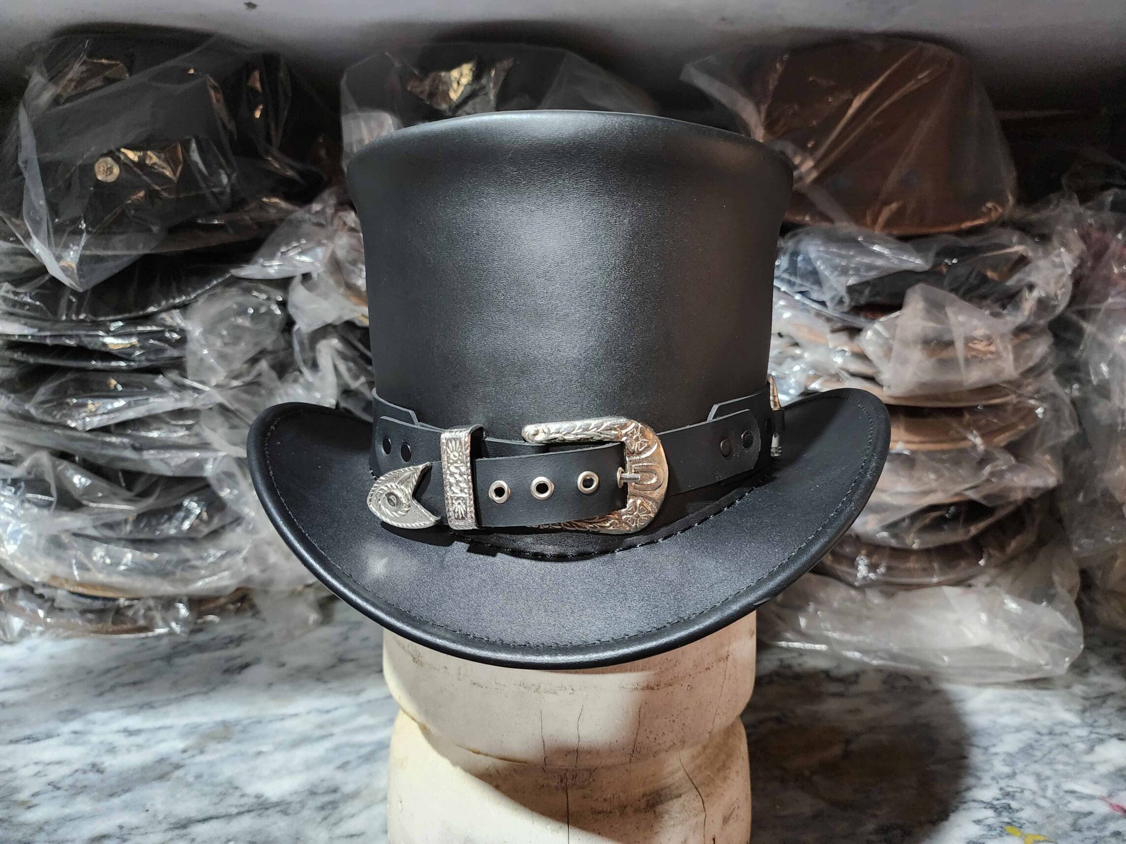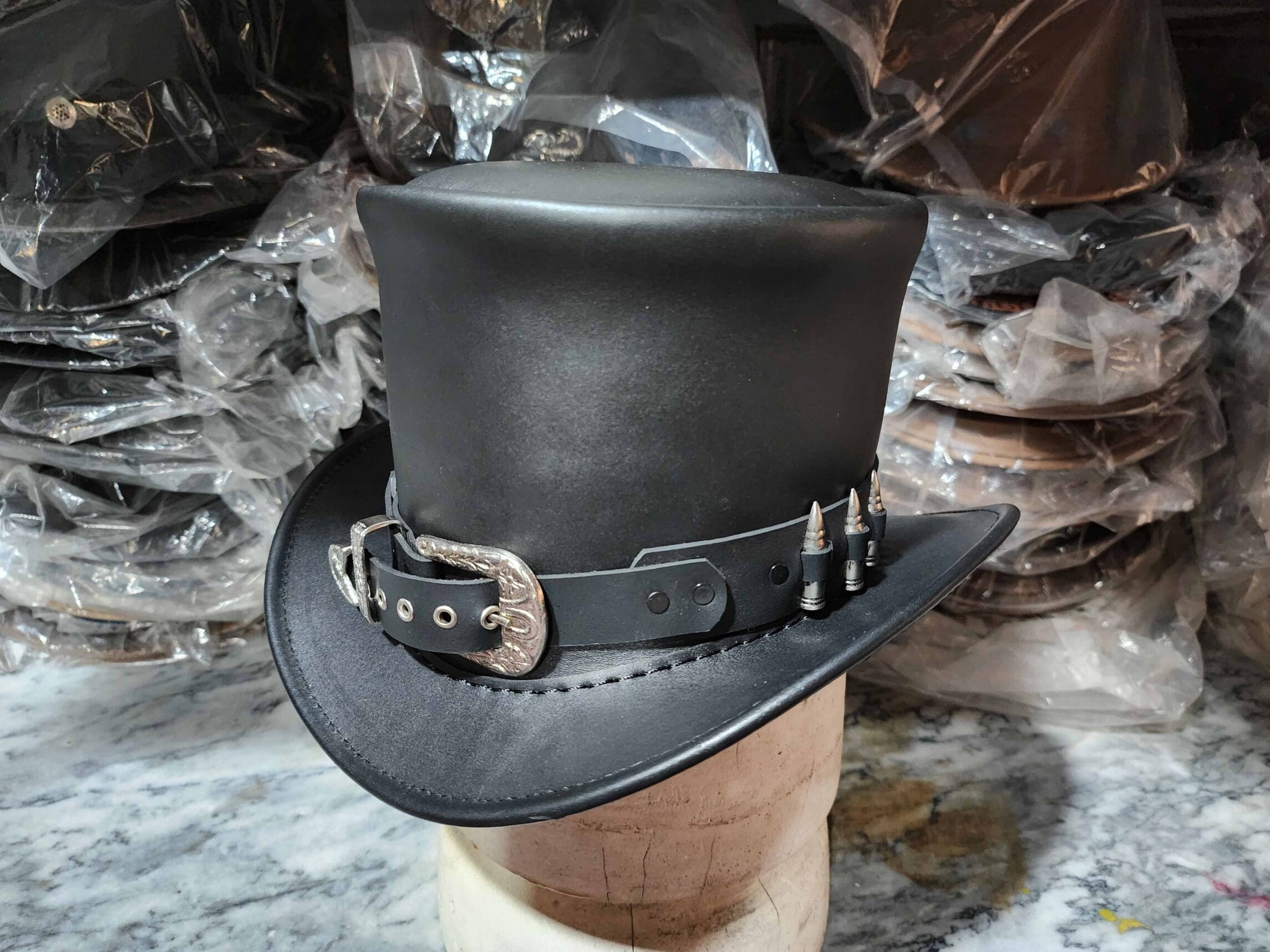 Specification: Peacekeeper Black Leather Top Hat
