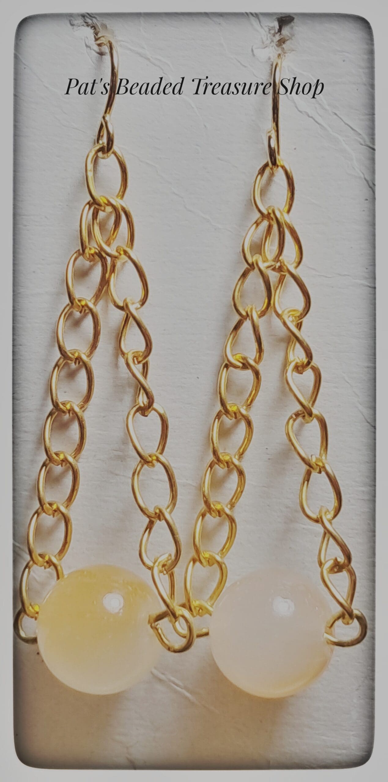Light, airy, and softly elegant, these gold-tone chain dangles feature warm peachy beads paired with gold-plated ear wires for a delicate, glowing finish.
