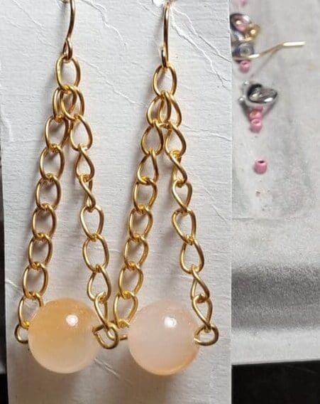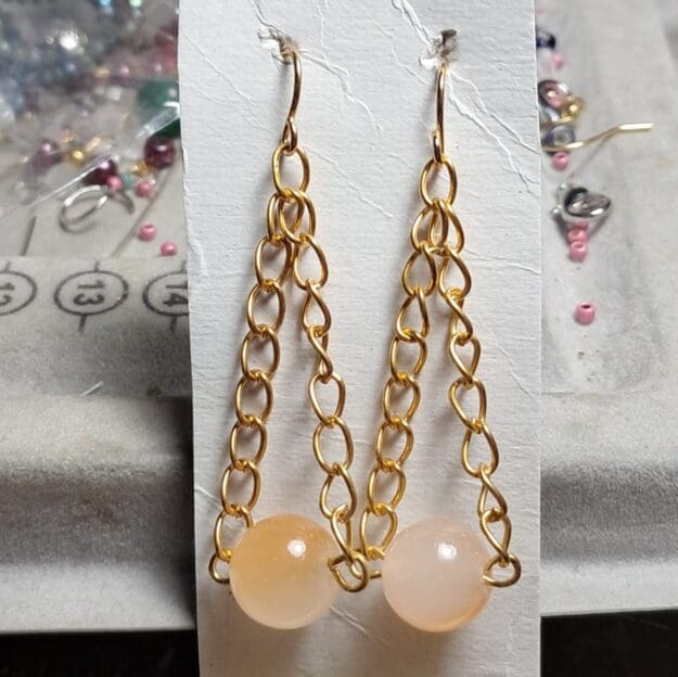#GoldPlated #GoldToneChain #PeachEarrings #DangleEarrings #LightweightJewelry #HandmadeJewelry #BohoChic #FeminineStyle #PatBeadedTreasureShop