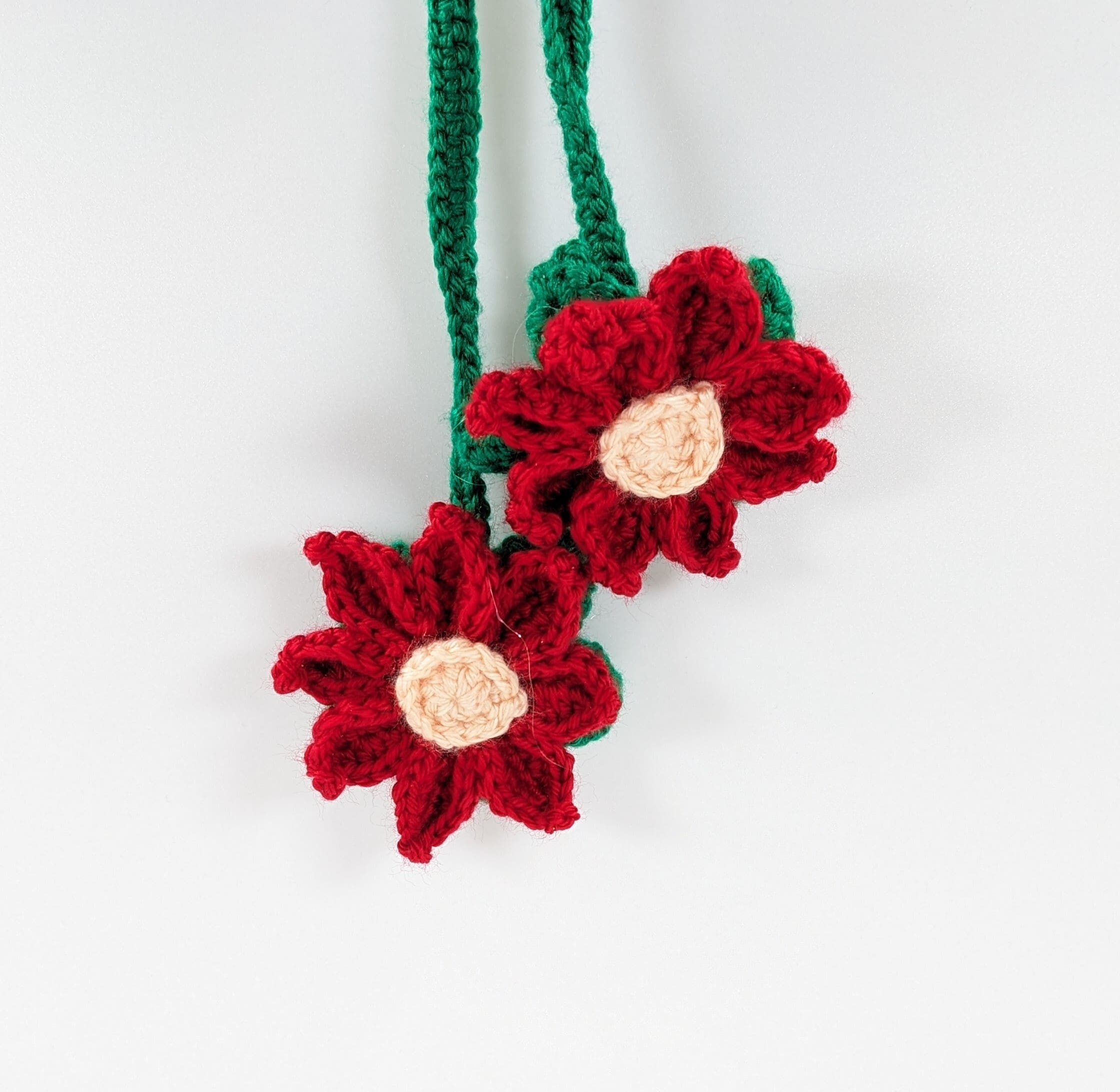 Poinsettia Car/Home Decor. You can use this cute Poinsettia to hang from your cars rear view mirror for the holiday season. Also you can use in your home to tie back your window curtains or hang in a window. You can find more fun Christmas items in my shop.