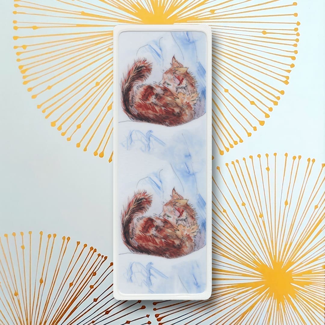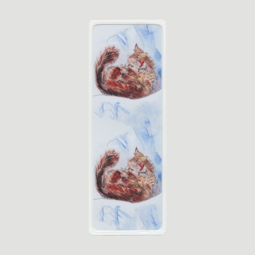 Featuring a whimsical illustration of a cat nestled in a blue pillow, this charming bookmark brings a touch of magic to your reading experience.