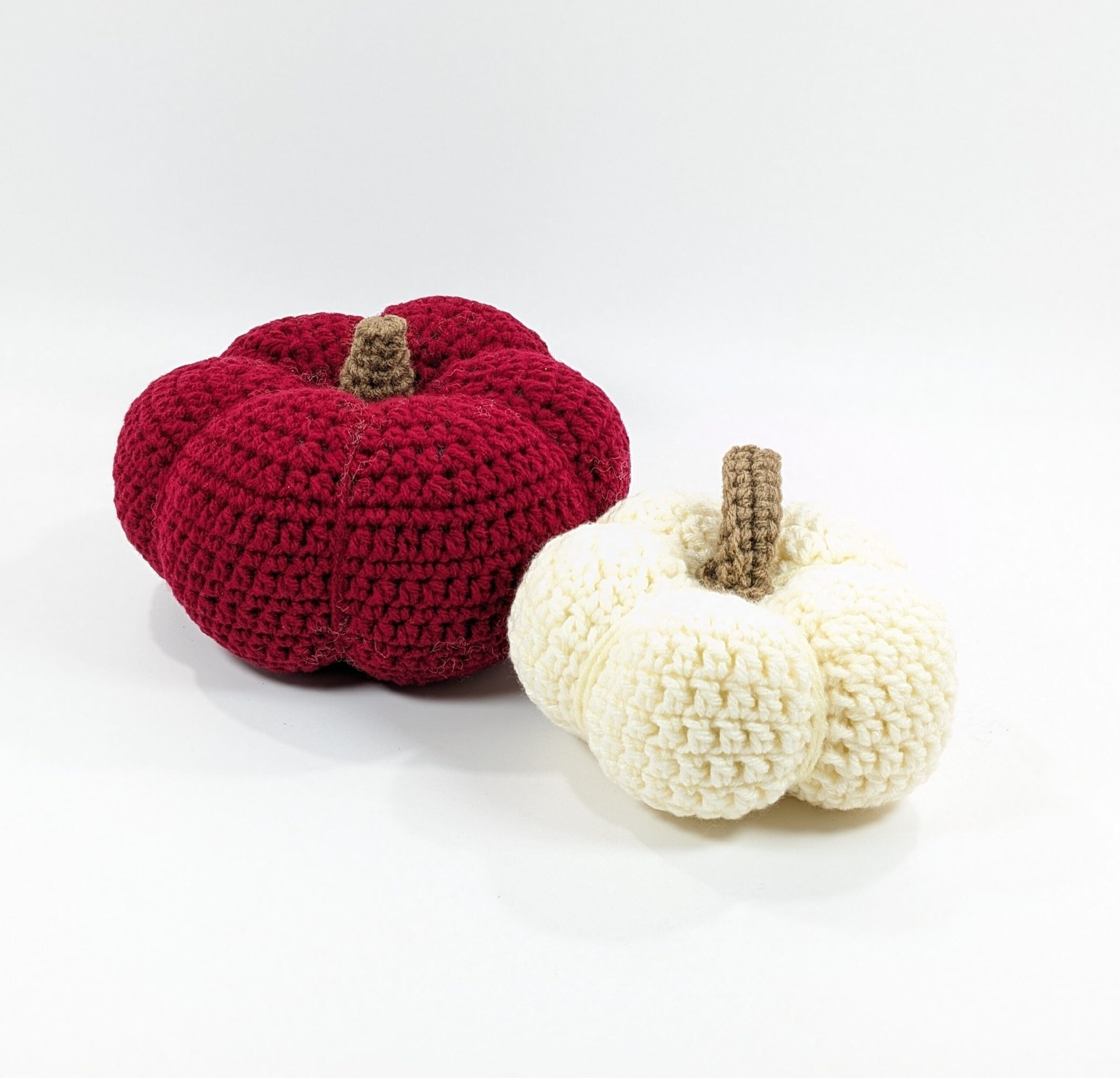 Pumpkin Medium Burgundy & Cream Fall Crochet. You get a set of two pumpkin to decorate your home for fall. Also the red pumpkin measures 61/2″ X 5″ inches wide. You can have one made in orange, burgundy or a light olive green. Also this pumpkin can be made in different sizes at a different price. You can find a large selection of fall items in my shop.