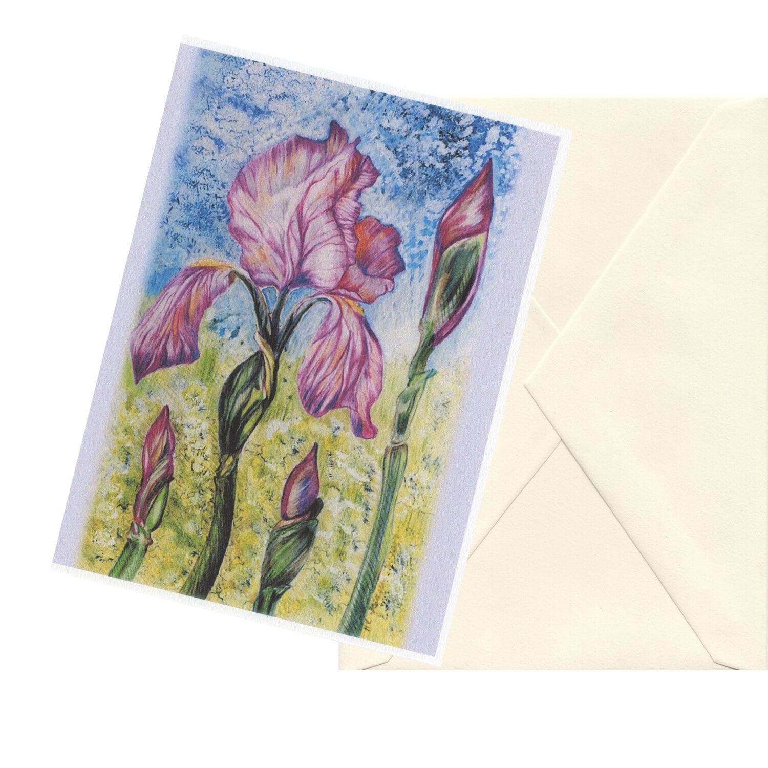 LIMITED STOCK ON CLEARANCE! This card is under a folded half-sheet in size. This card is lightweight, with a pebbled matte finish, printed on 100 percent cotton paper. Experience the beauty of nature with the Purple Iris Watercolor Floral Art Greeting Card Set. These cards will inspire and delight, featuring stunning nature watercolor artwork of purple Iris flowers in the garden. Perfect for sending heartfelt messages to your loved ones. Share the joy of flowers with your friends and family through this six-card set!