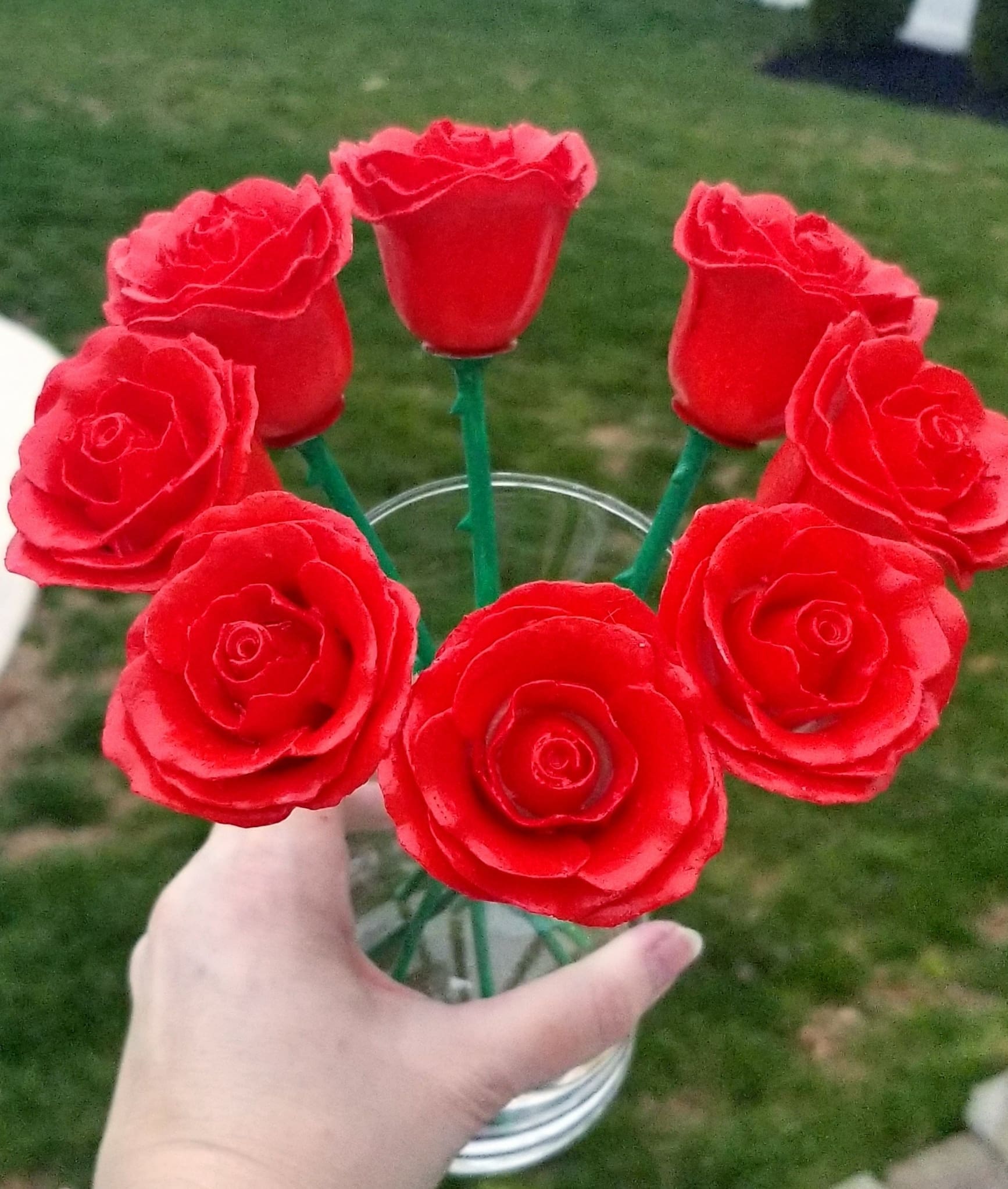 Each petal and detail are carefully 3D printed, and hand painted to resemble the beauty and elegance of a natural red rose. Complete with thorns!