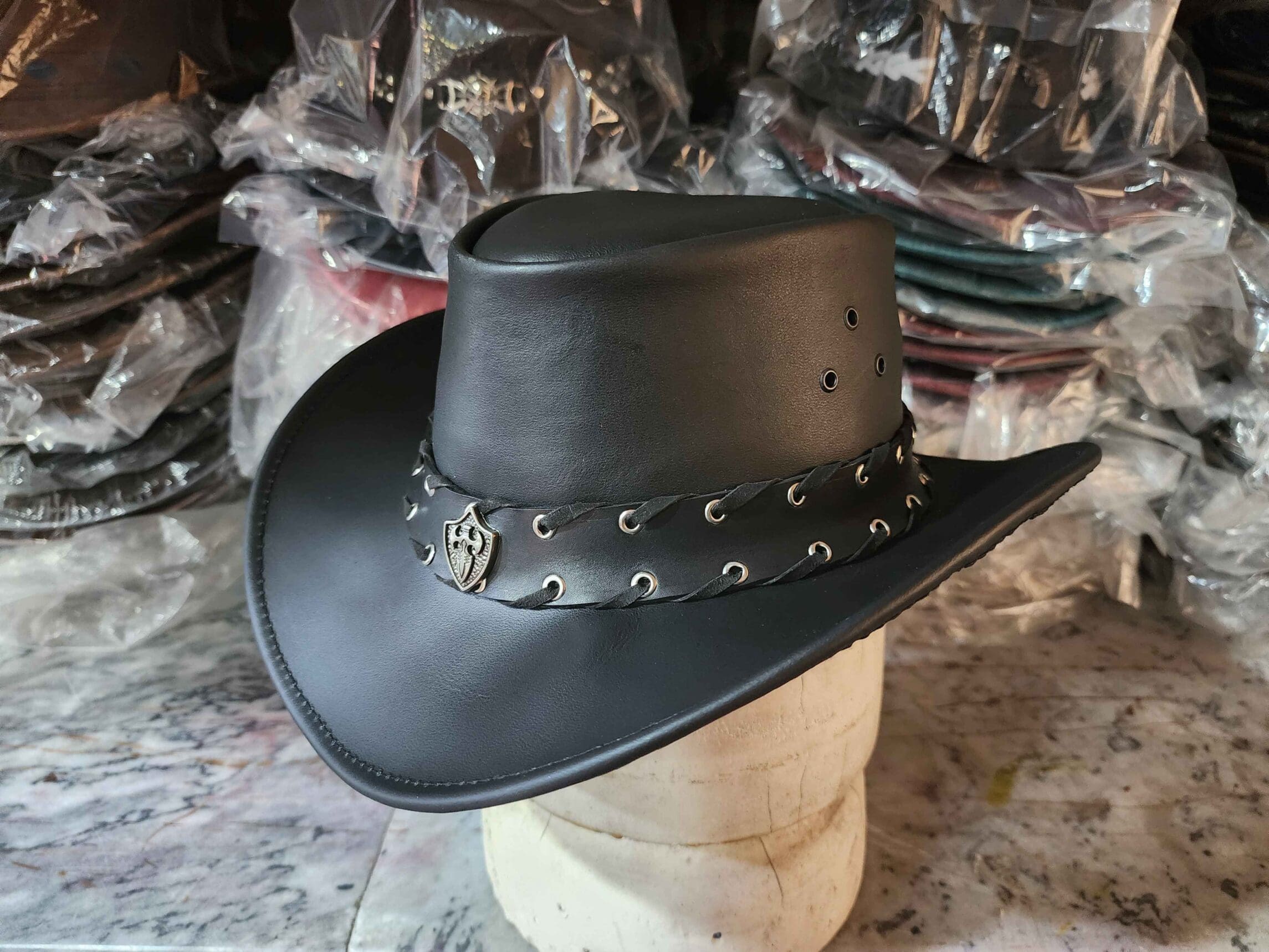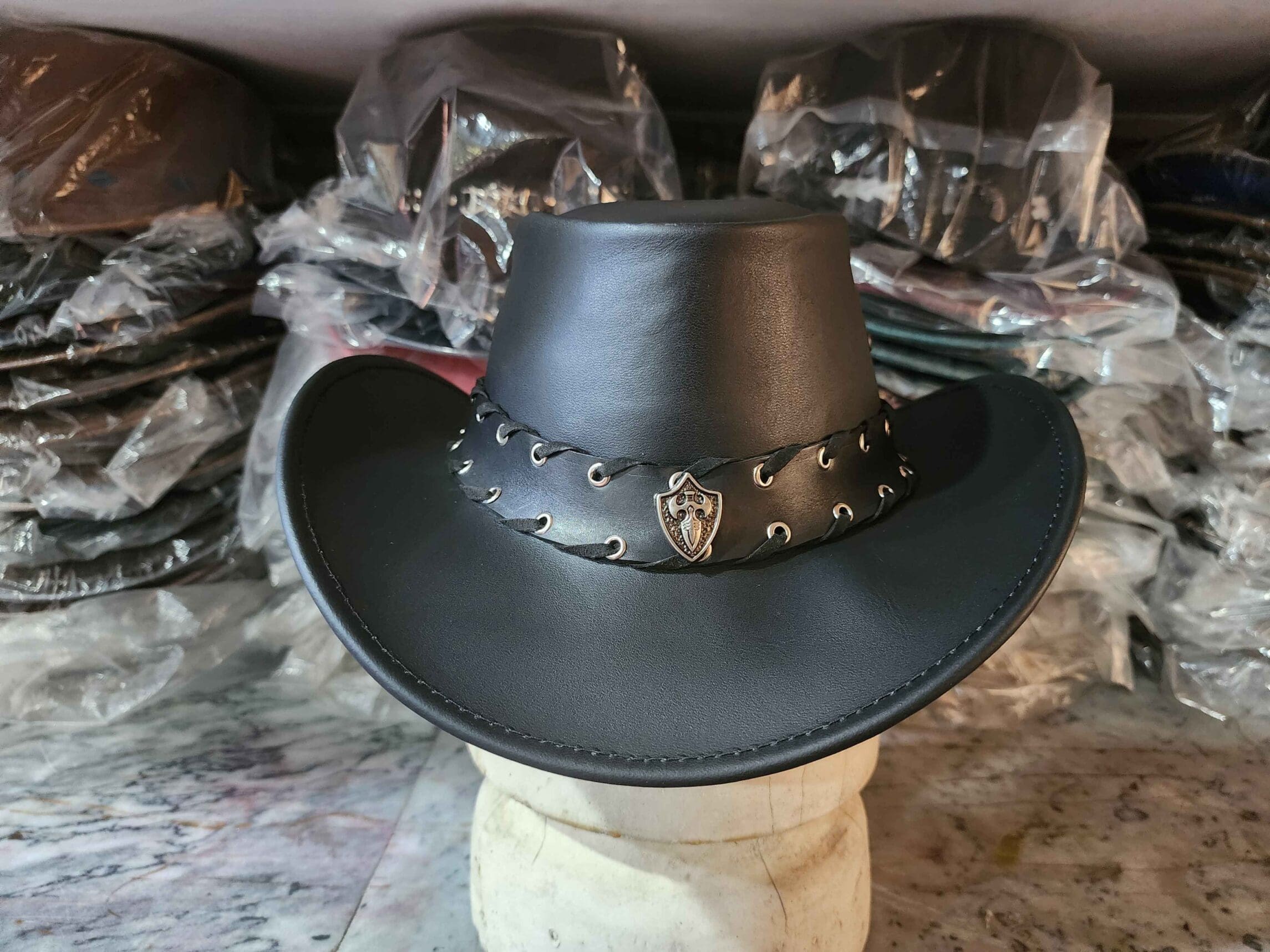 Specification: Shield Rivet Band Black Leather Cowboy Hat