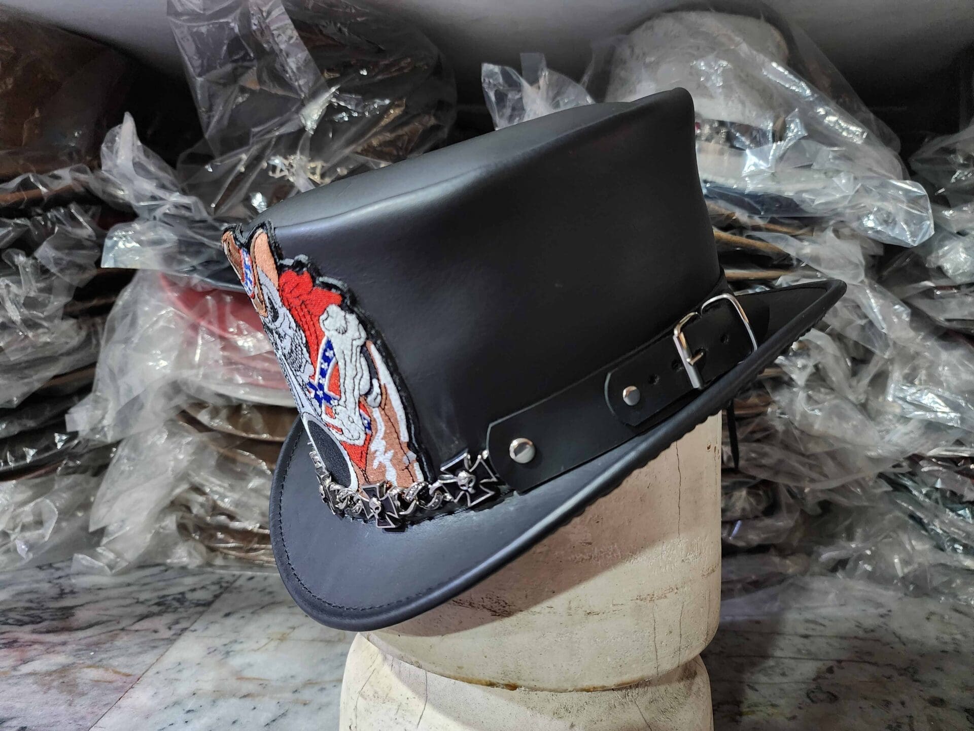 This hat is designed for bikers, rockers, steampunk enthusiasts, and those who love alternative fashion.