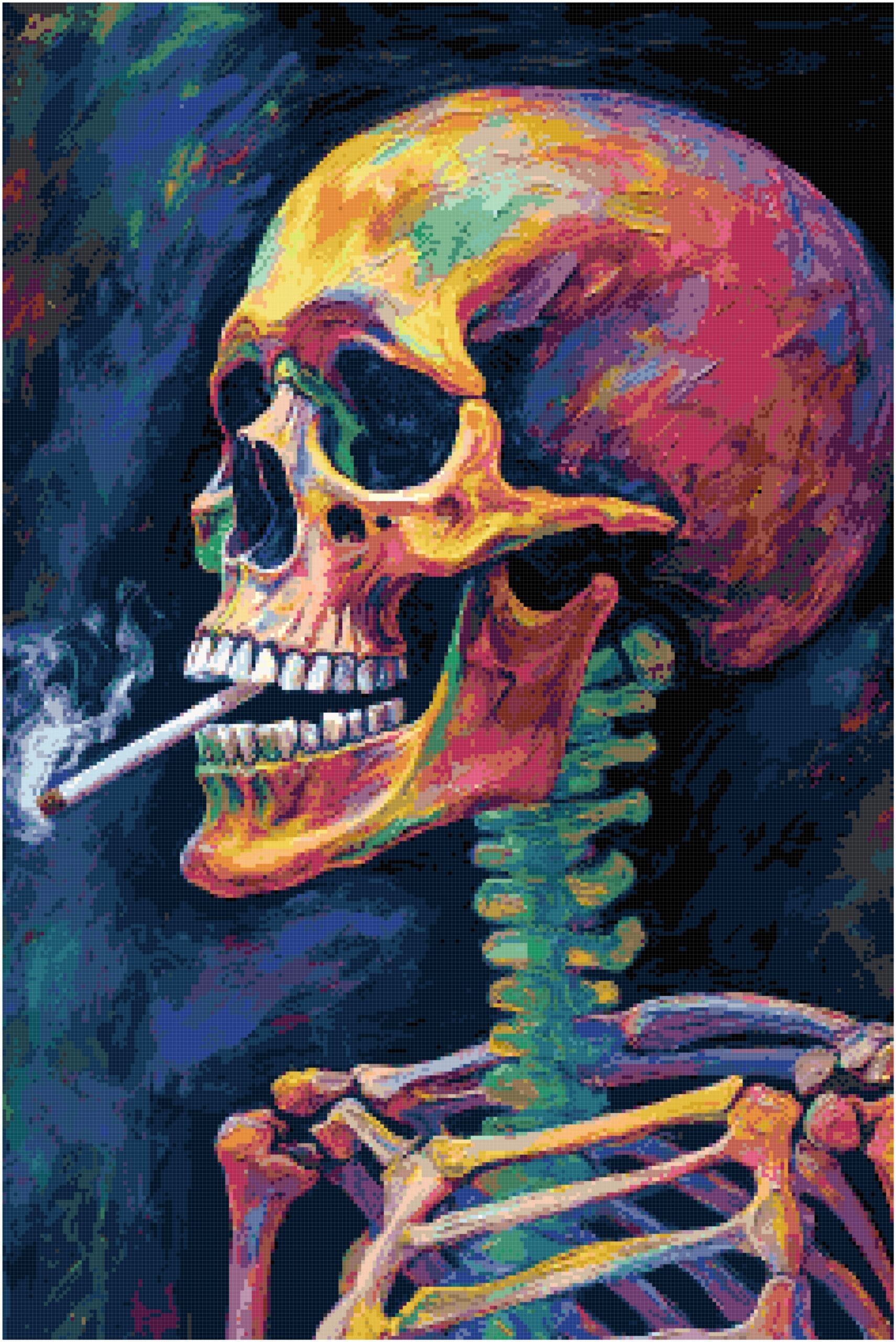 Smoking Skull Cross Stitch Pattern