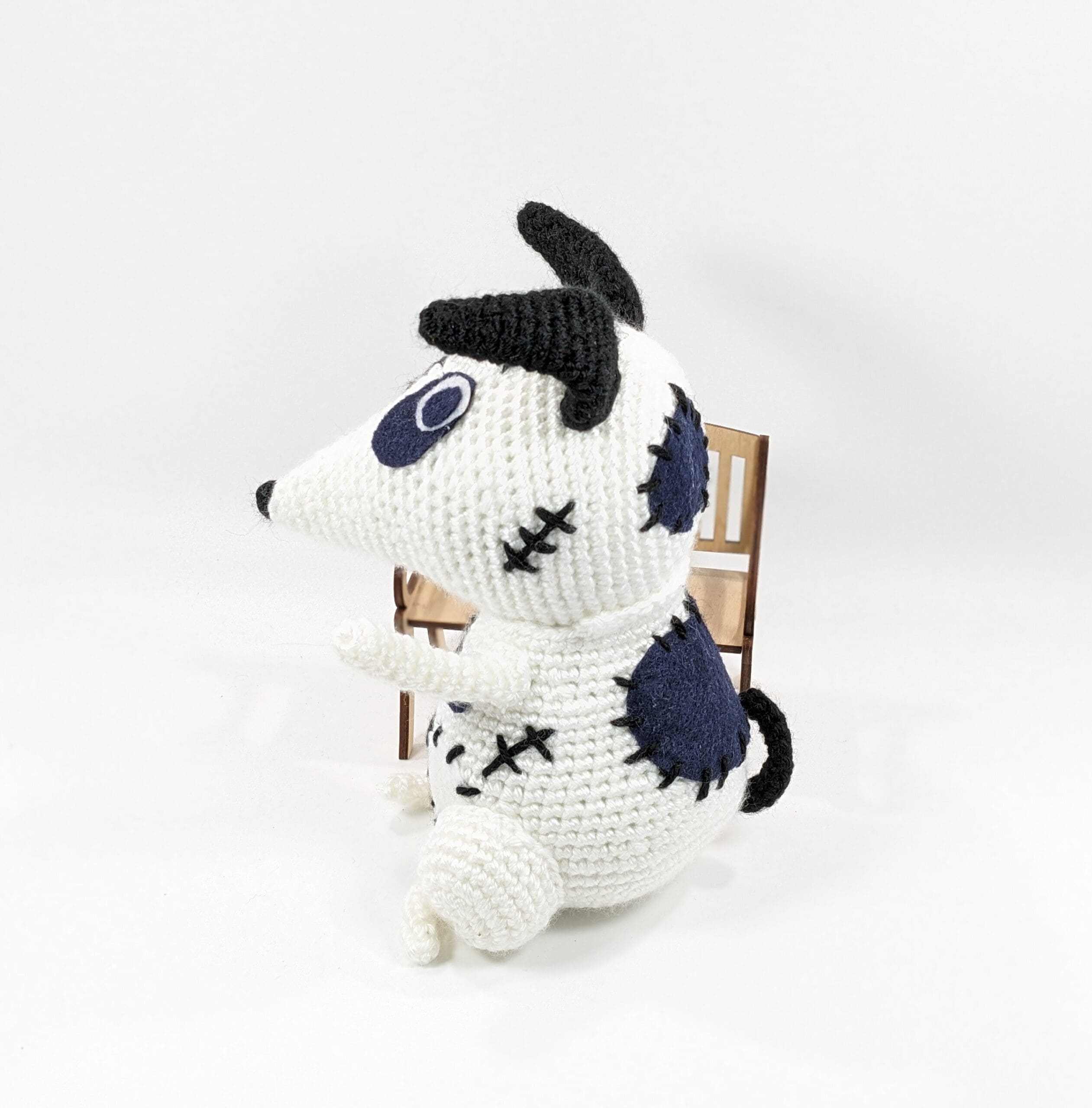 Sparks Franks Weener Crochet Dog. You and your child will love this cute crochet version of Sparky to add to your Halloween decor. Also Sparks is just a cute plush dog to cuddle with. You can find a large selection of other Halloween and fall decor in my shop. Also I take custom orders and can make whatever your looking for and do not see in the shop.