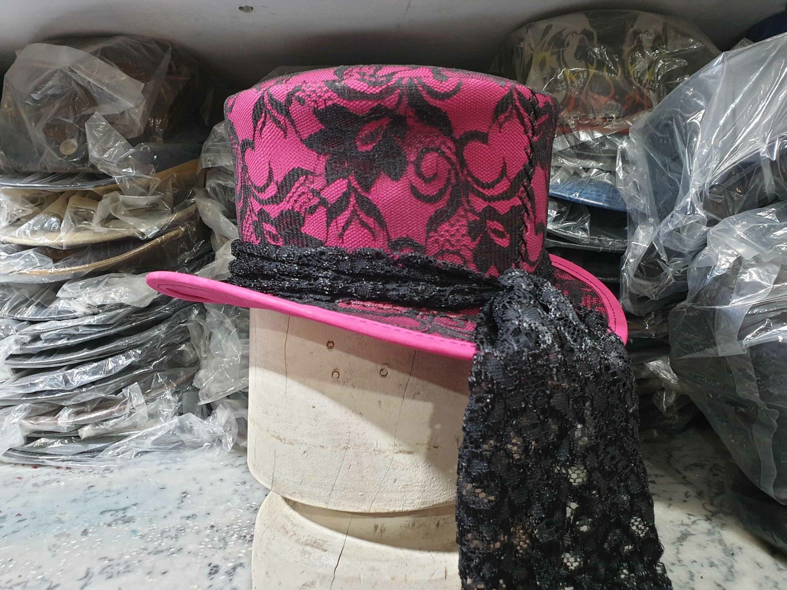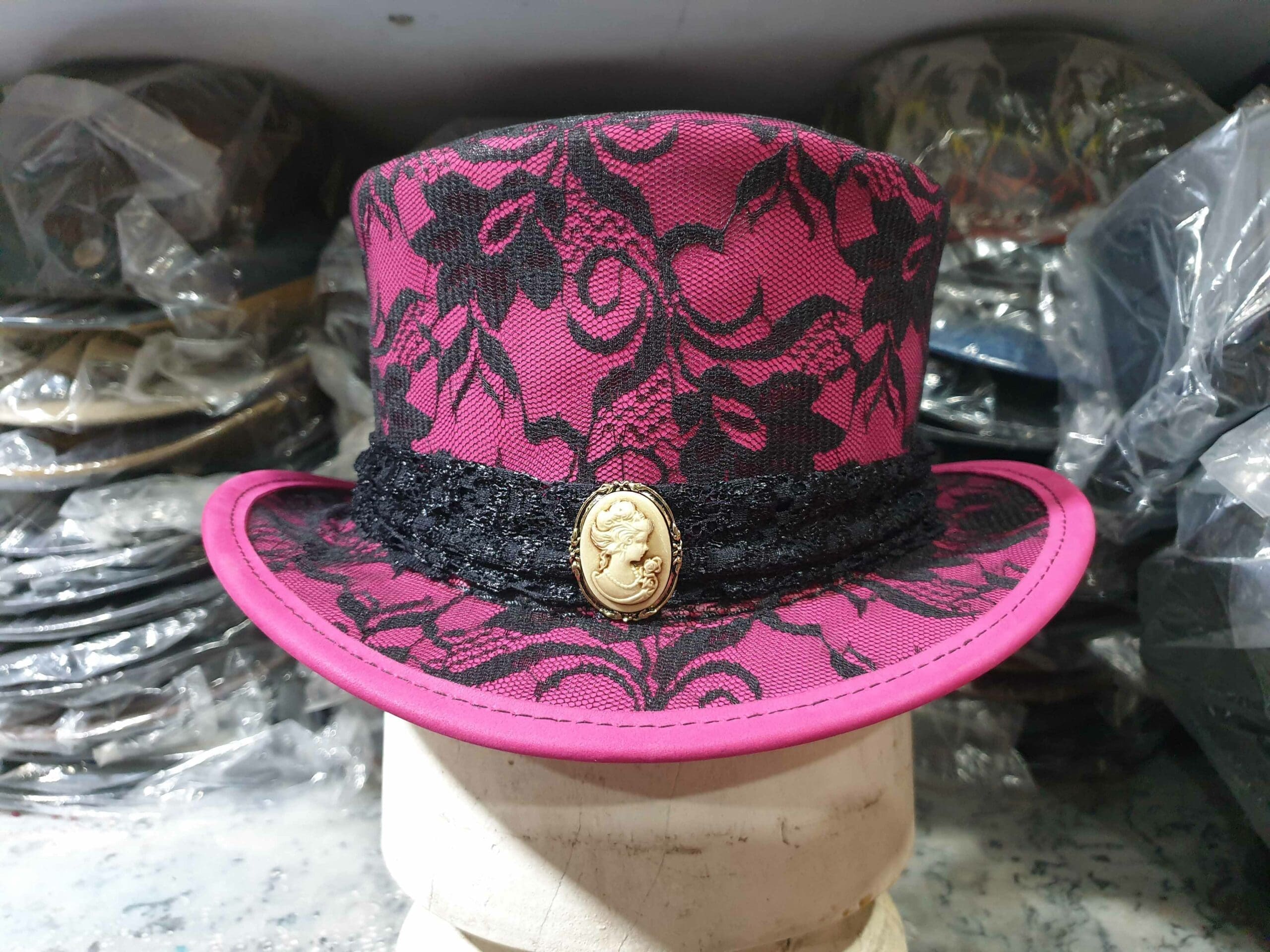 Specification: Steampunk Black Crusty Band Pink Leather Ladies Top Hat