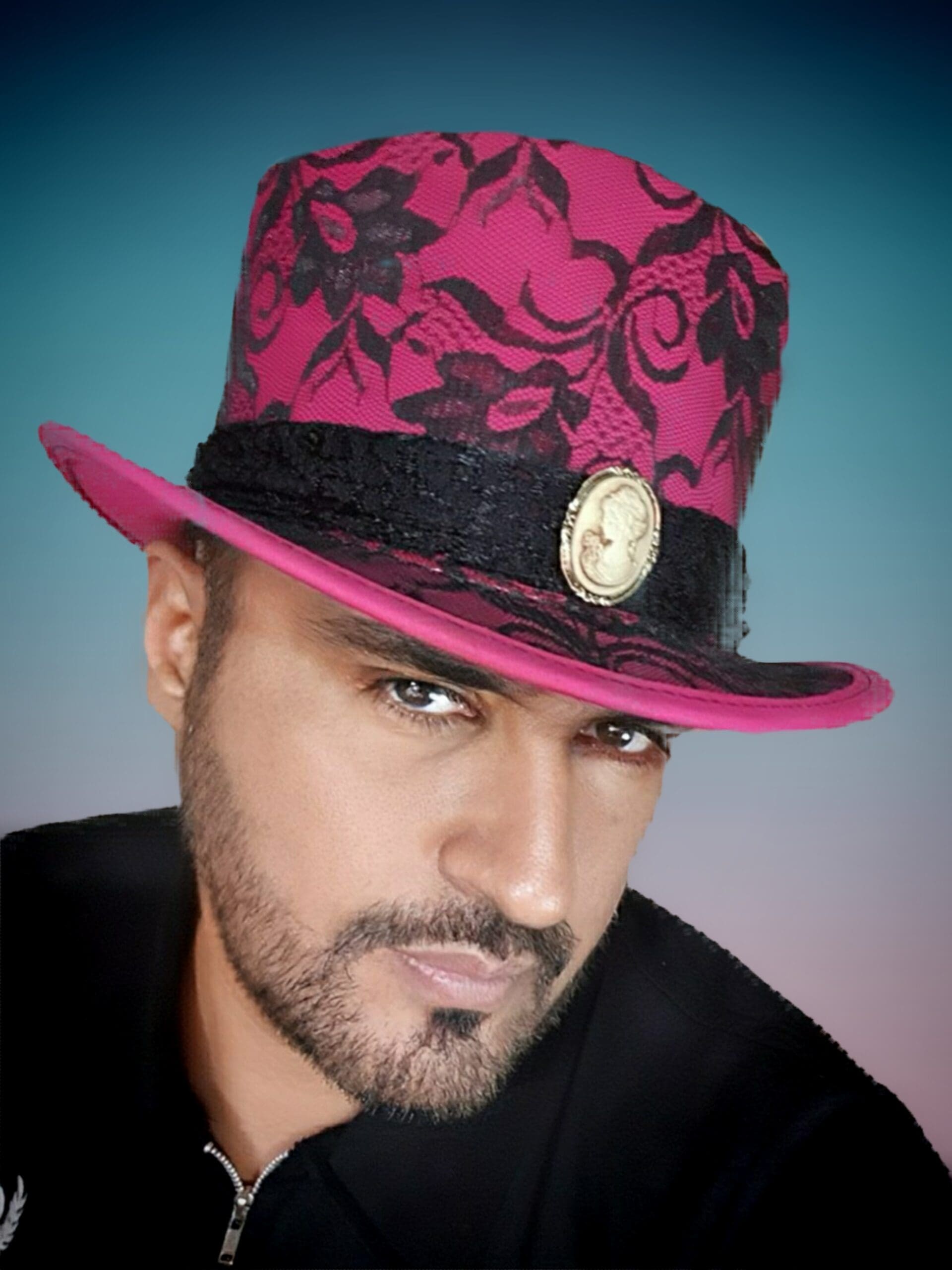 Steampunk Black Crusty Band Pink Leather Ladies Top Hat.
