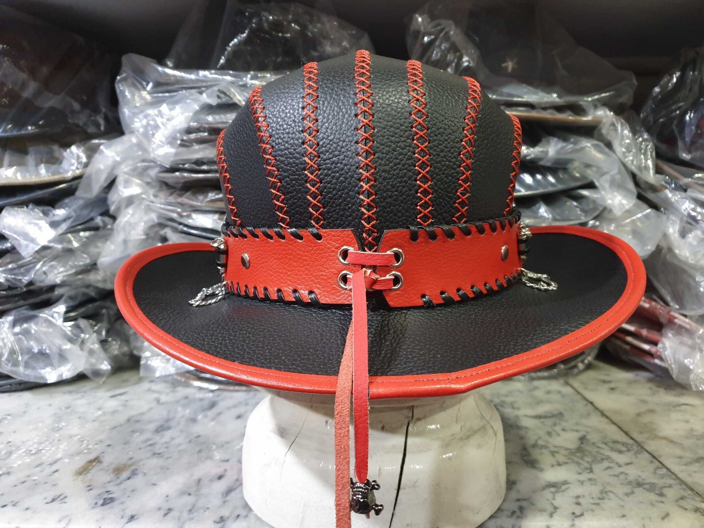 Introducing the Steampunk Gothic Bowler Leather Top Hat.