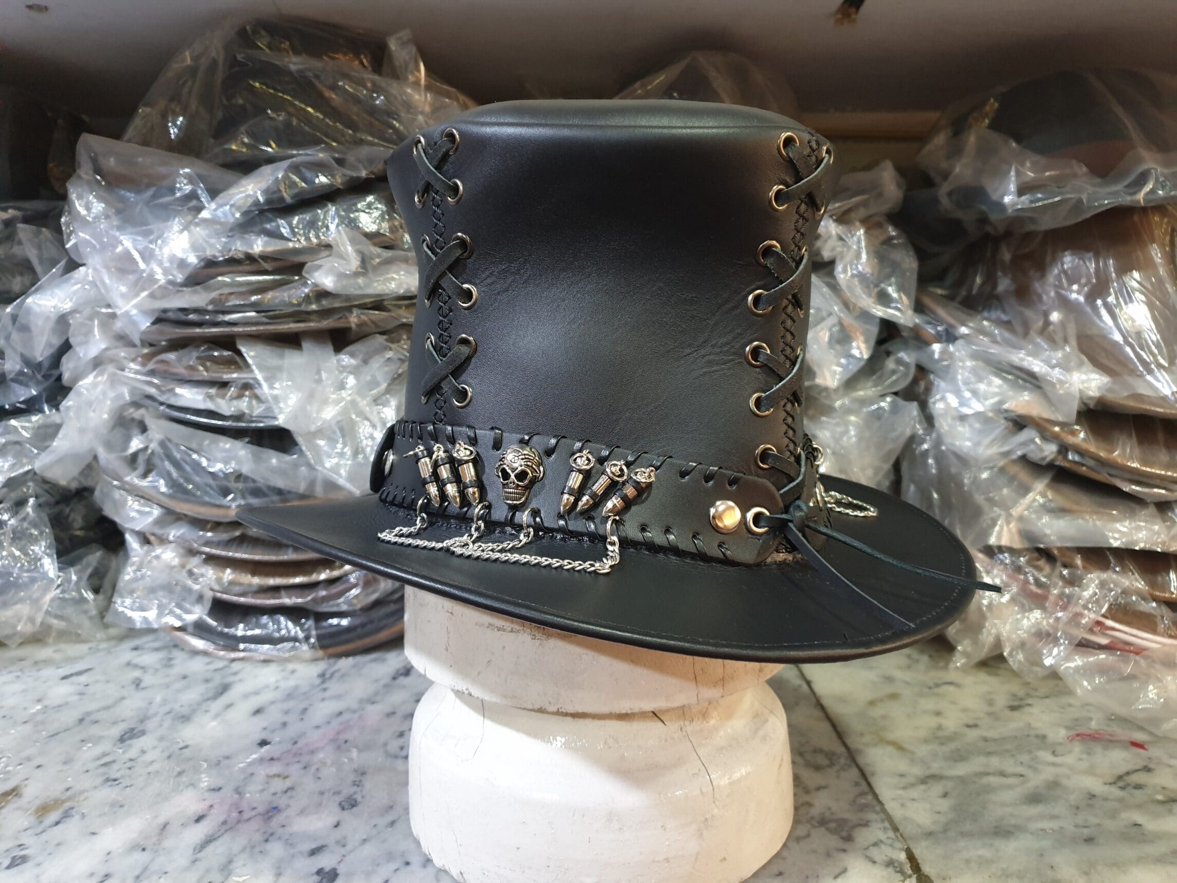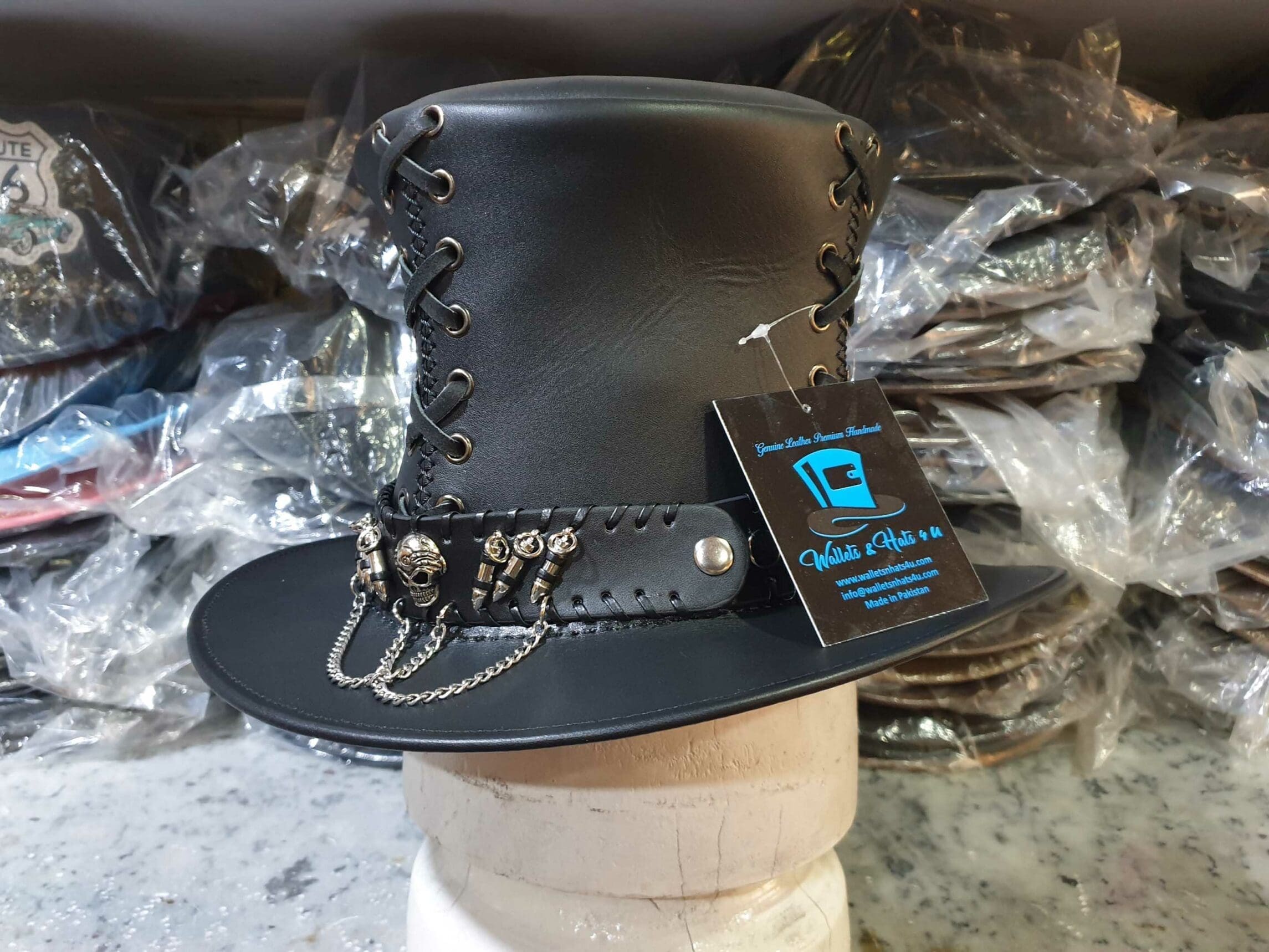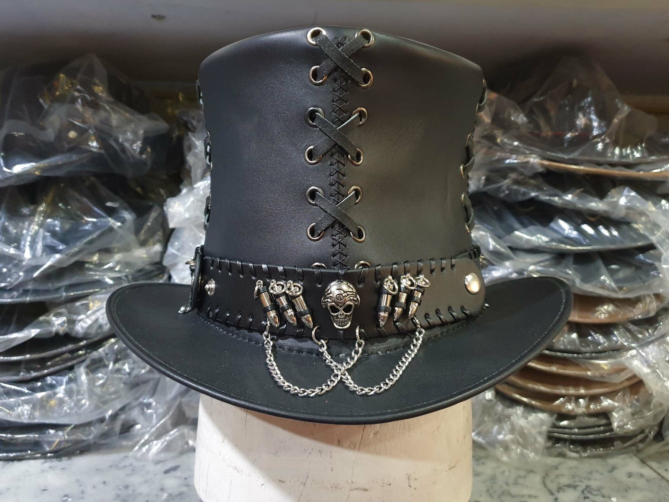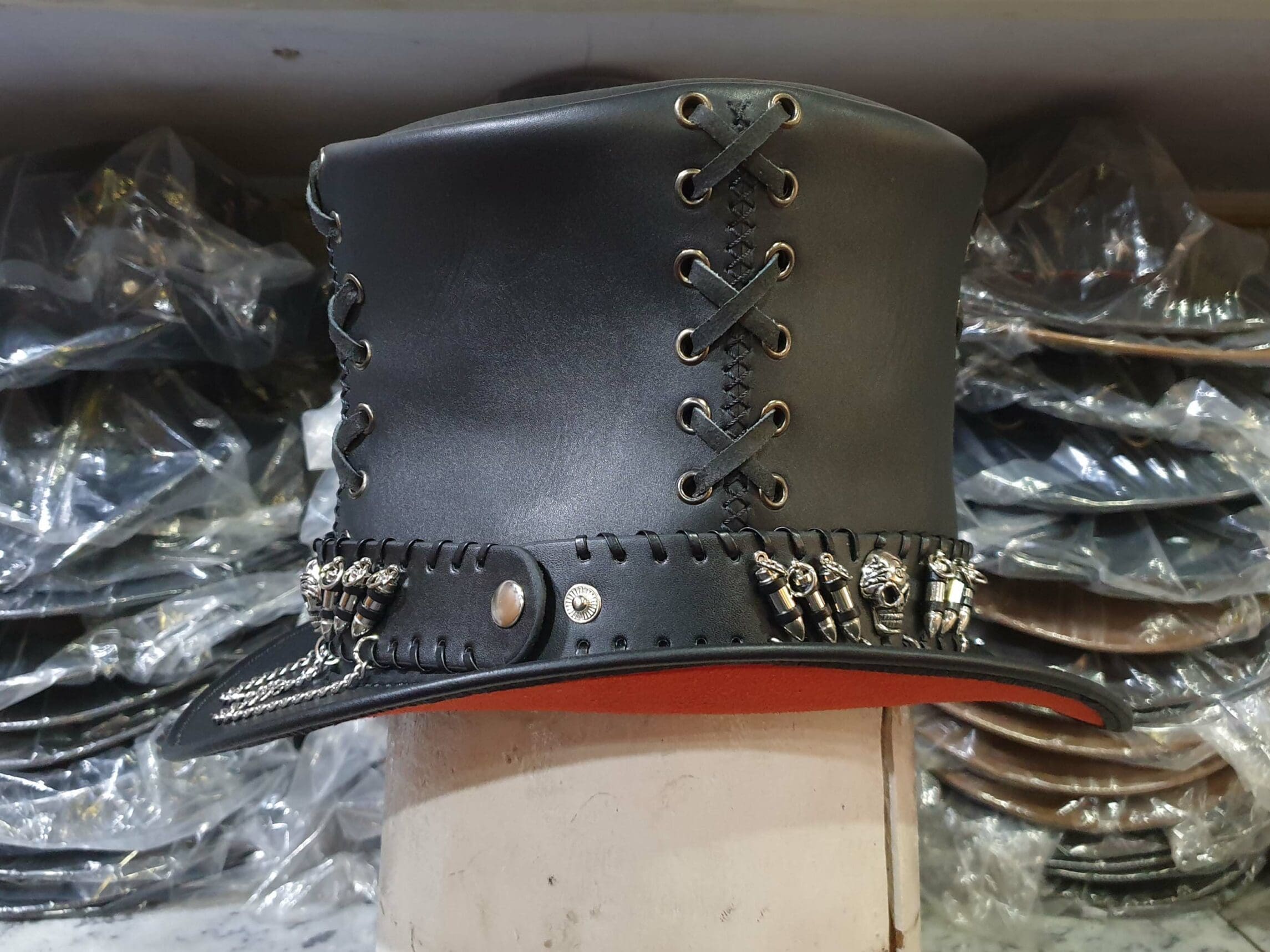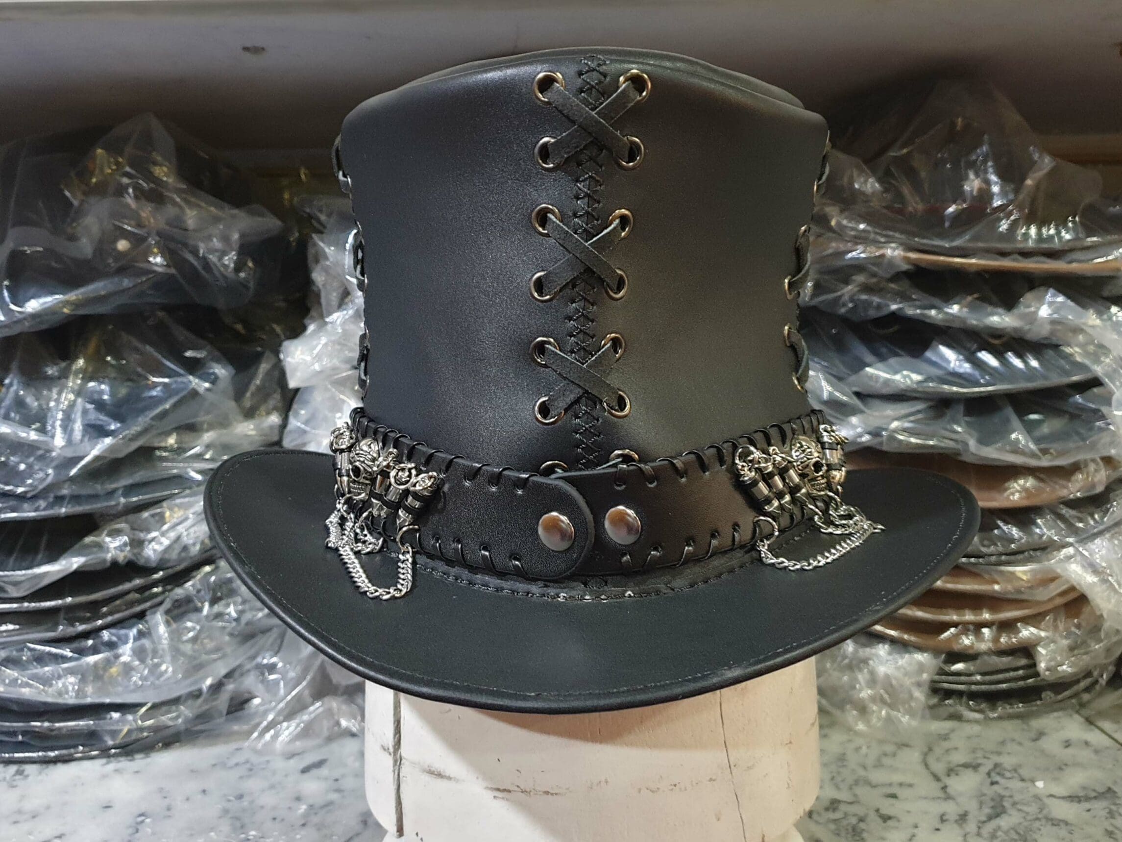 Whether you’re attending a Steampunk gathering, a Gothic event, or engaging in cosplay, this leather top hat is the perfect accessory to complete your ensemble.