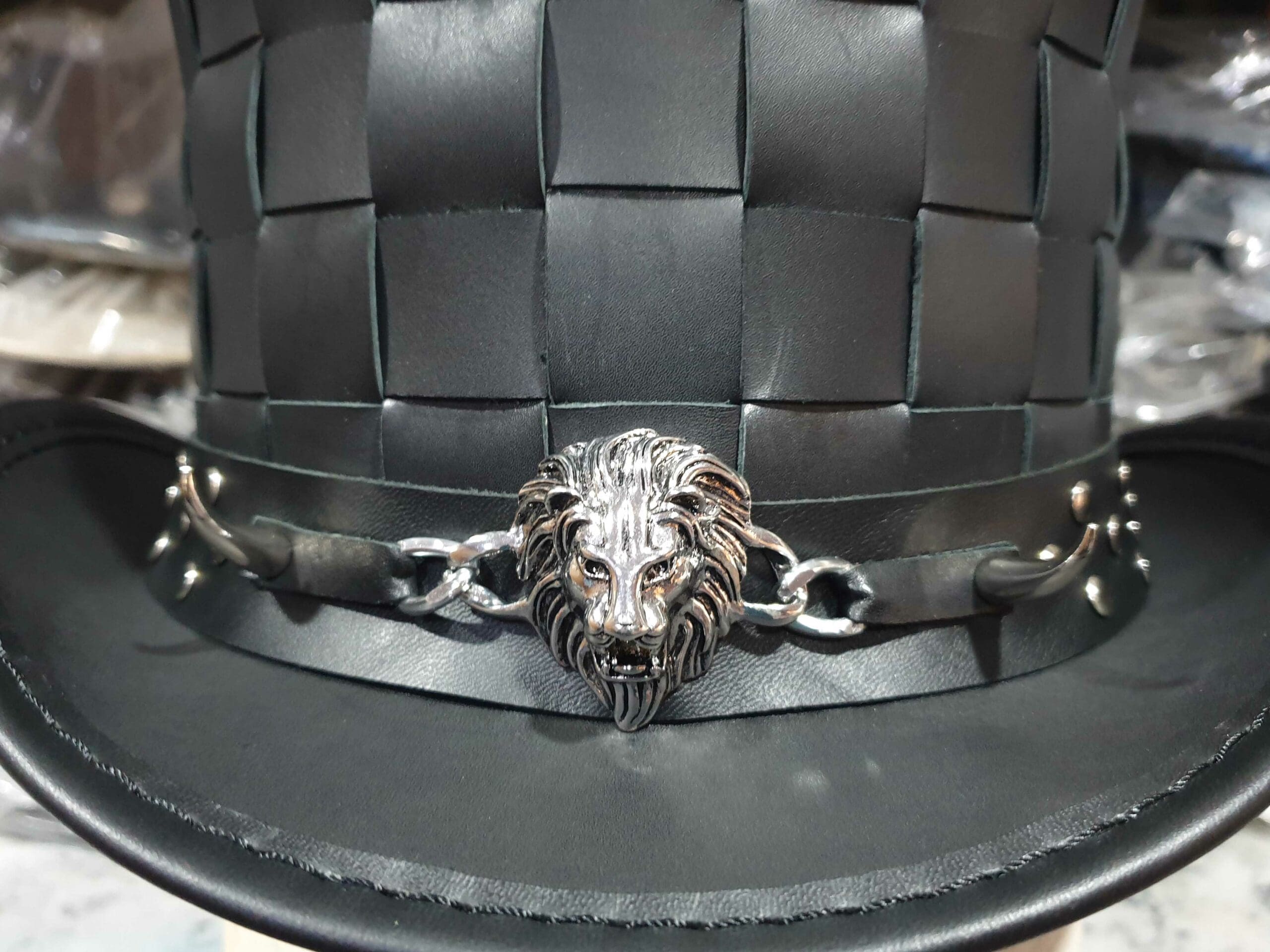 Silver Metal Lion King Head, Claws & Studs on Leather Hat Band.