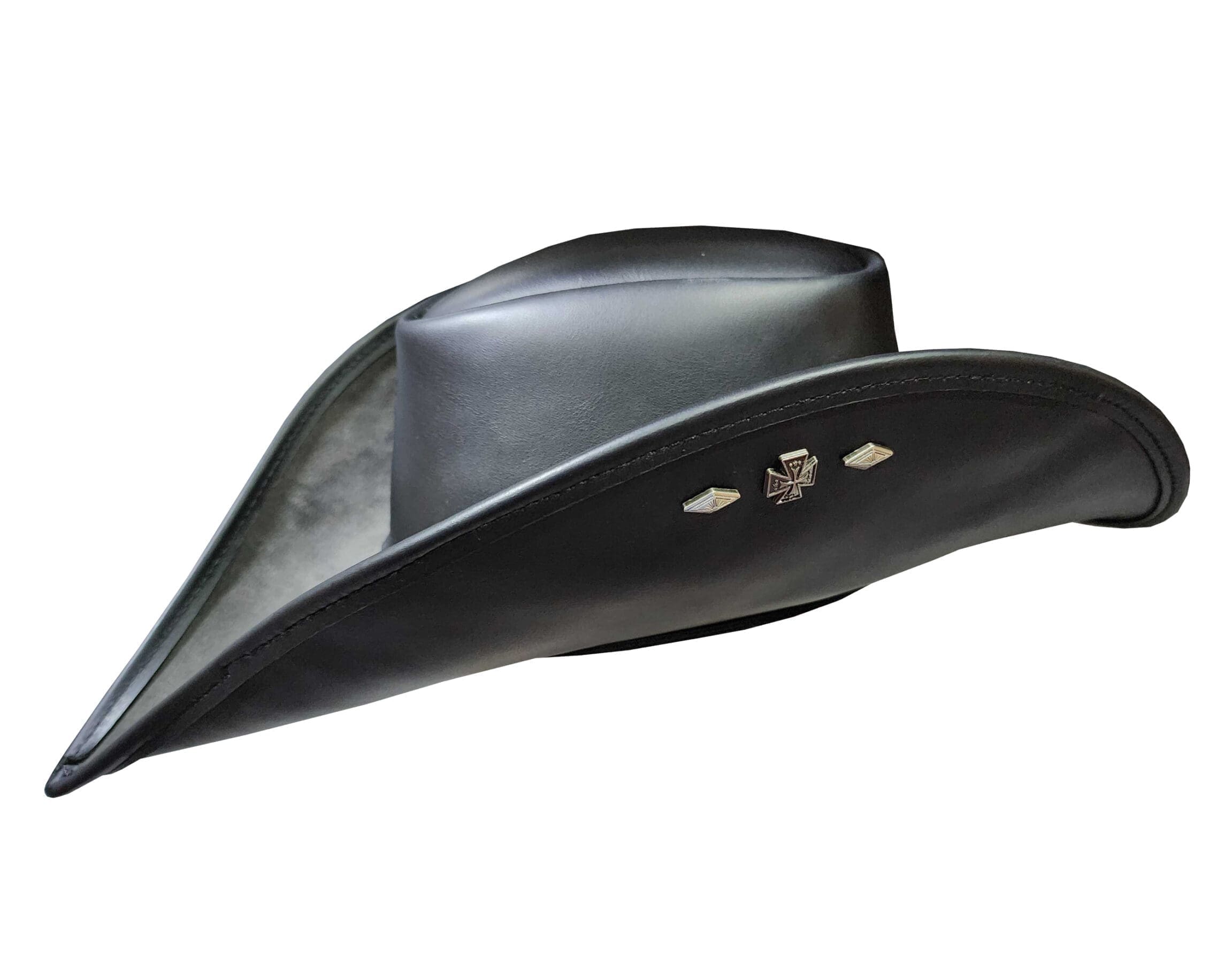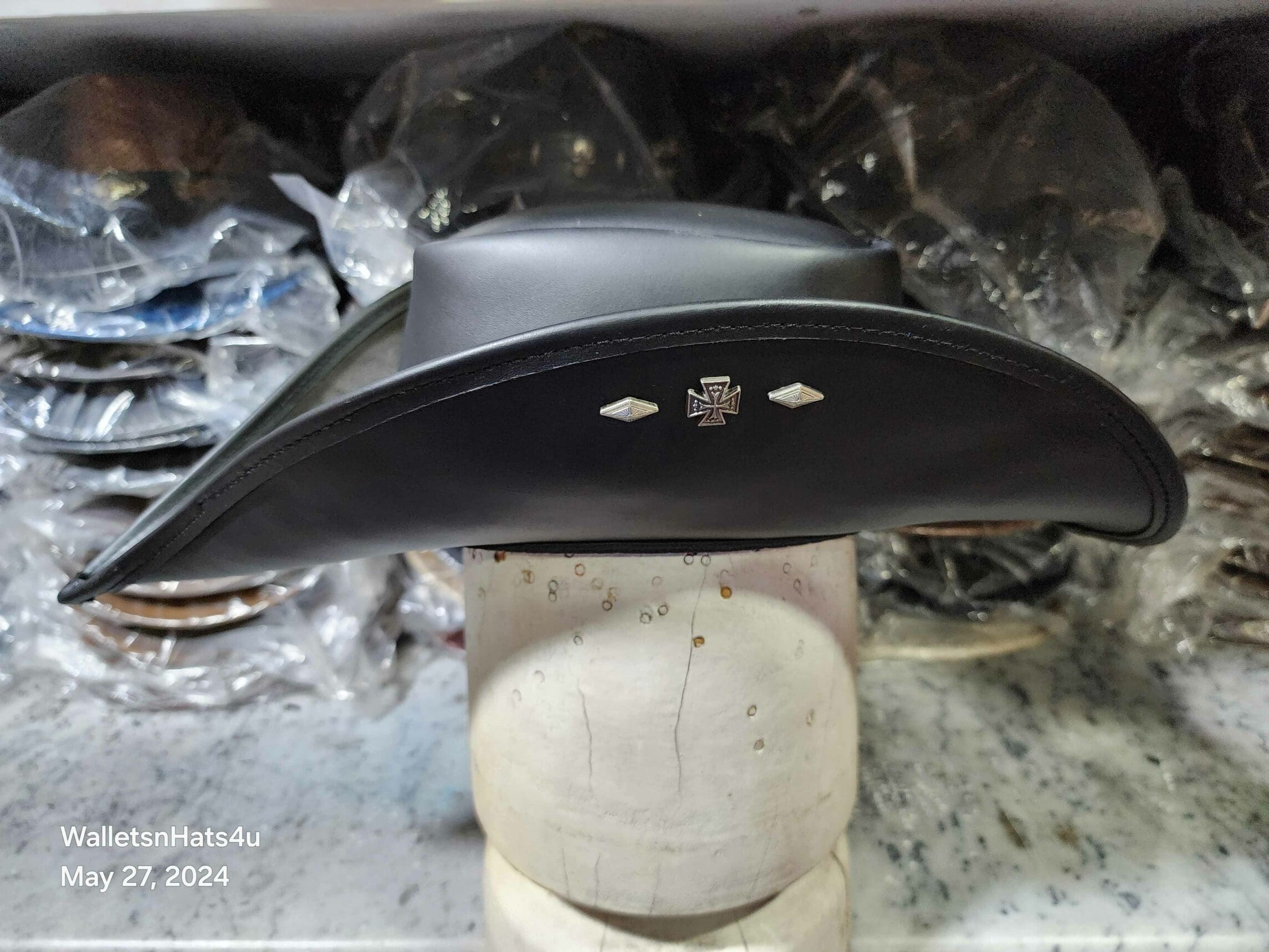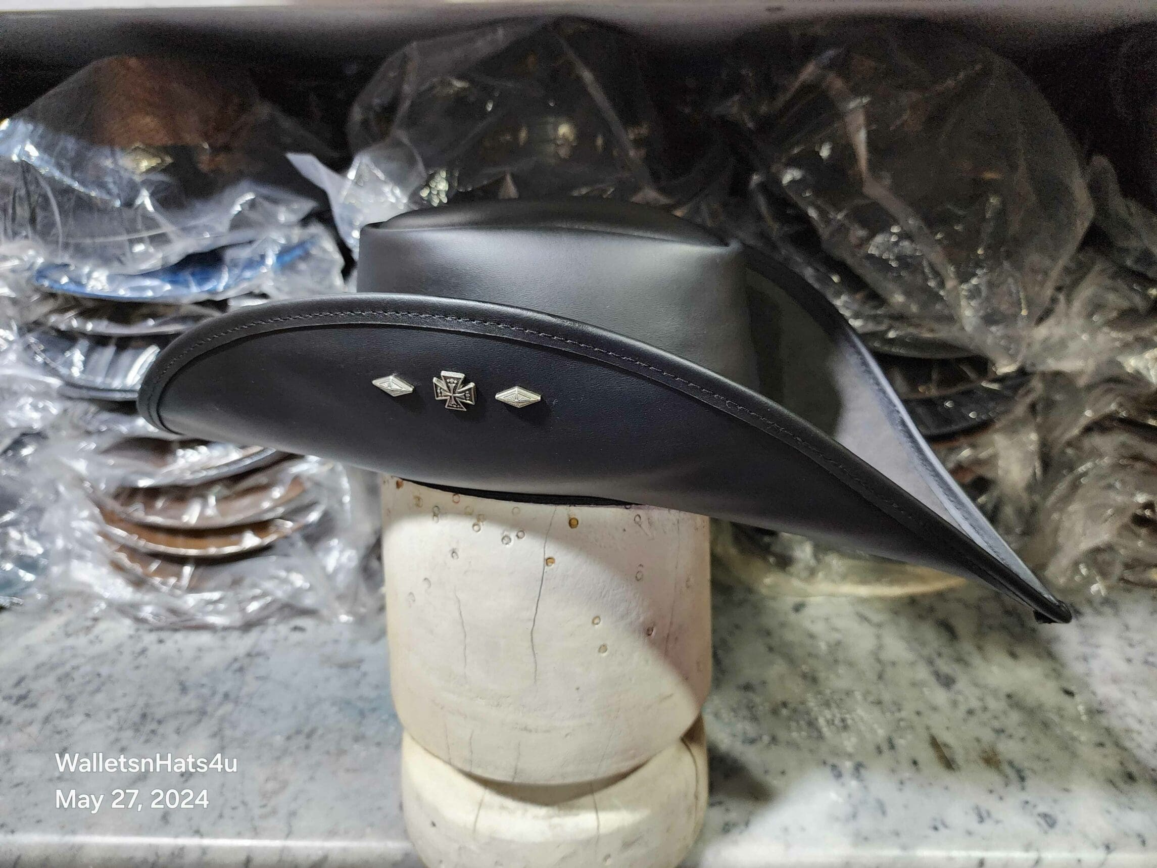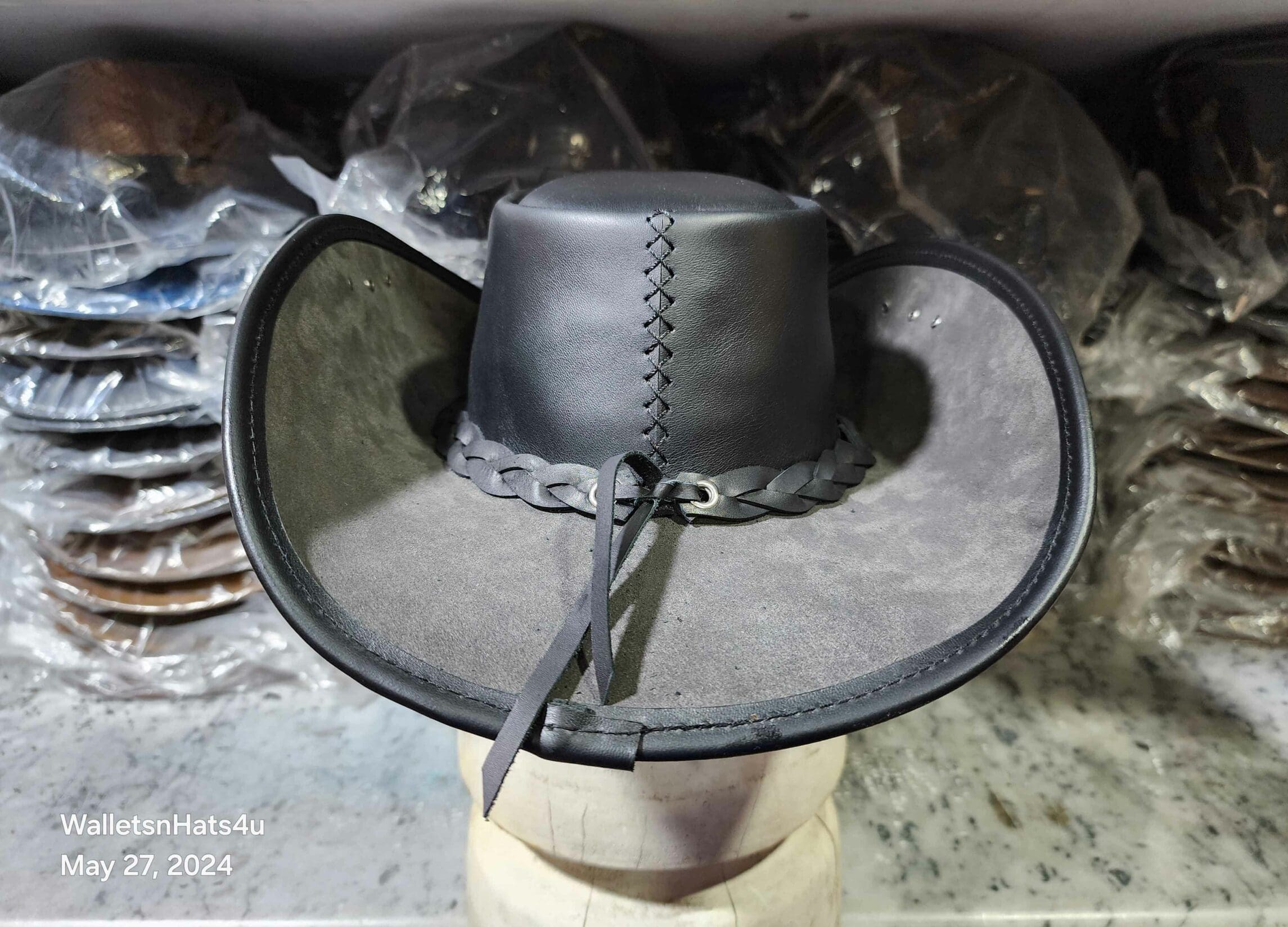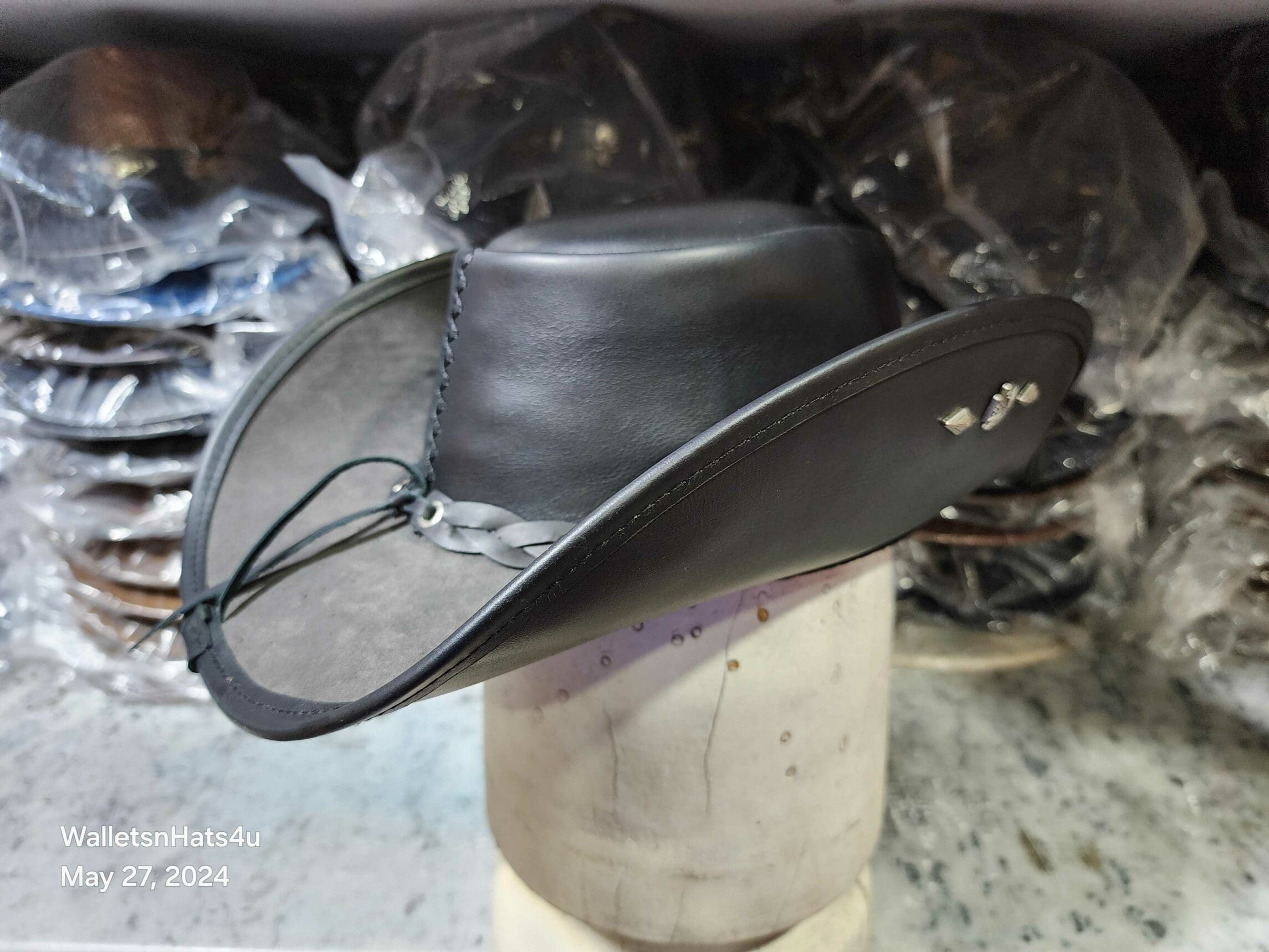 Premium Black Leather: The hat is made from high-quality black leather, providing a sleek and durable finish that promises longevity and a classic look.