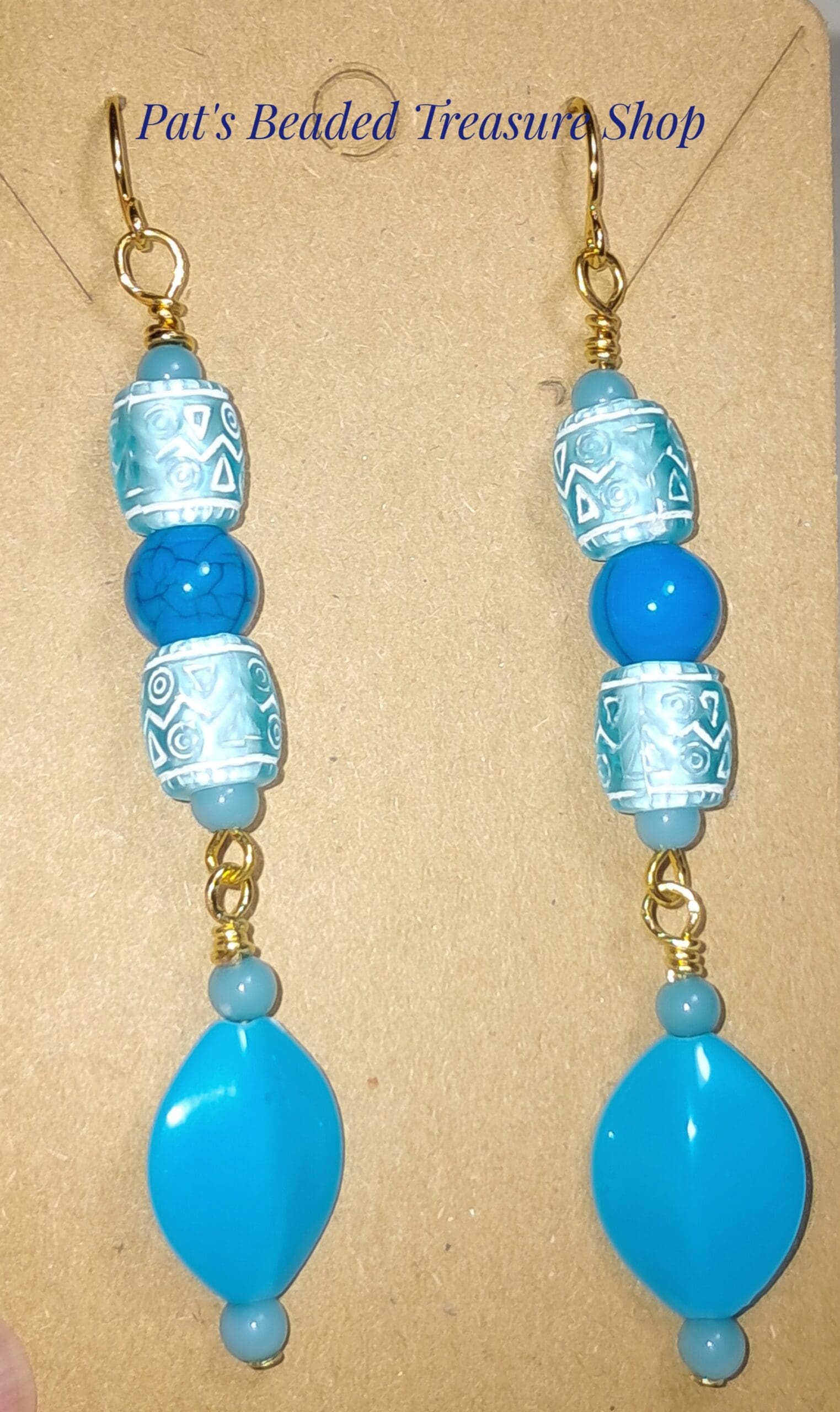#Handmade #Handcrafted #Pat’s Beaded Treasure Shop #Unique #Turquoise #BeadedJewelry #Dangle Earrings #Lightweight #Beach-inspired #Spring #Summer