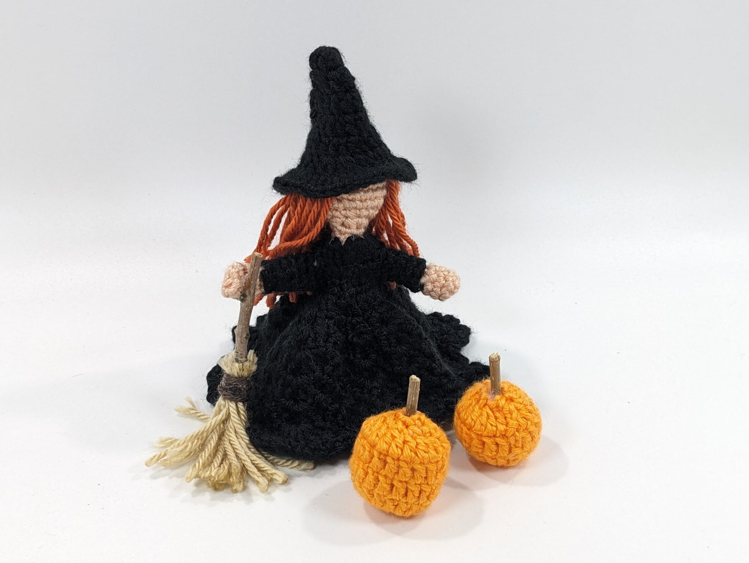 Also this Tiny Witch Crochet Lacey Decor Set is crochet with 100% acrylic yarn and has real wood for the broom and pumpkin stems. (NOT RECOMENDED FOR CHILDREN) There is fabric glue added to hold pieces together. (This is a delicate item)