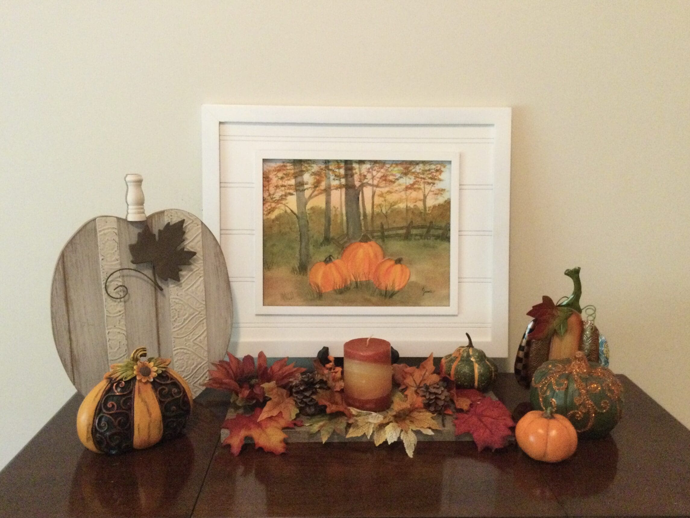 Trio of Vibrant Pumpkins Watercolor Painting
