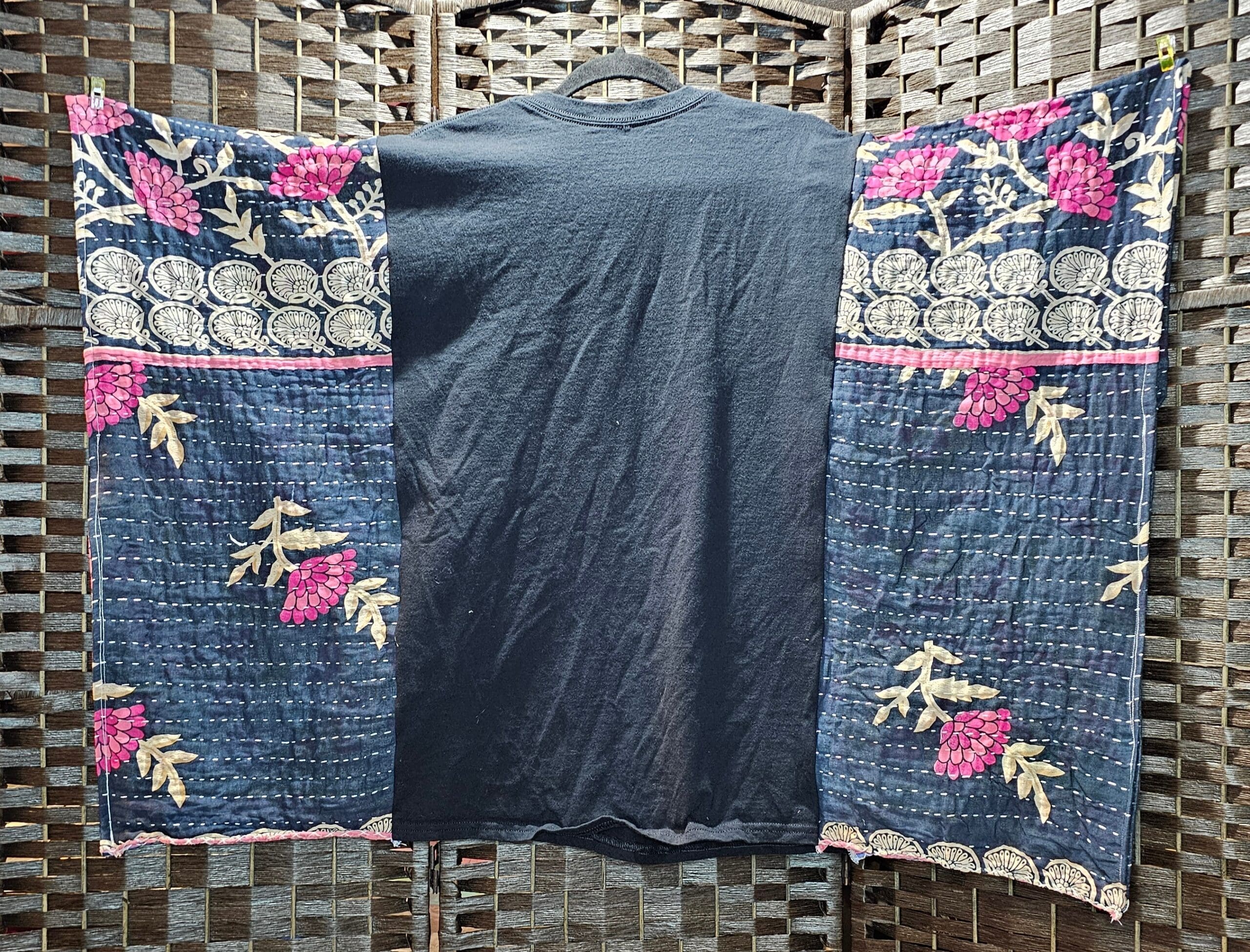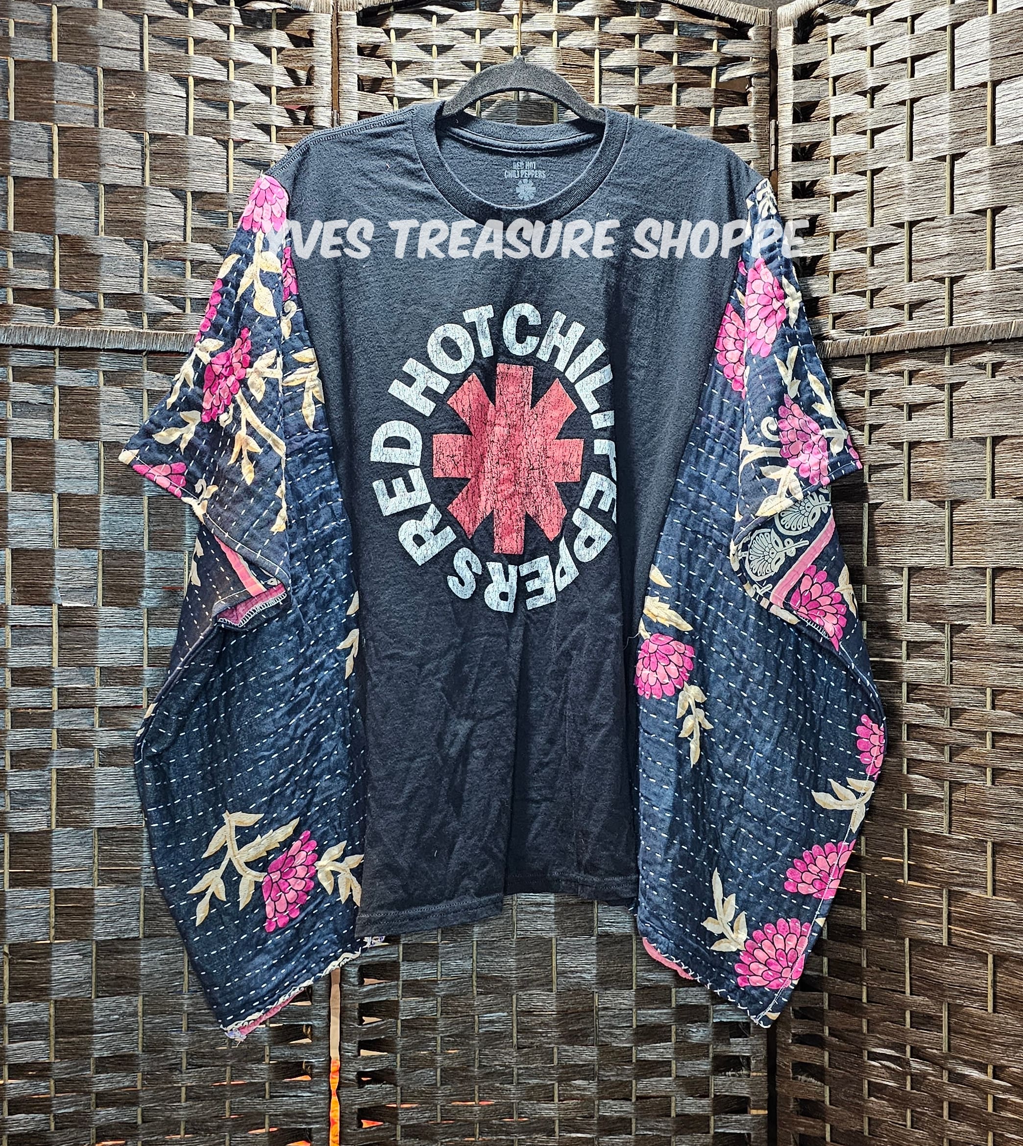 One Size. This Poncho top is made with a new refashioned large Red Hot Chili Peppers t-shirt and vintage kantha quilt. 41 inches across. 27 inches from top to bottom. OOAK. Sides are sewn partway up, to be able to be worn as a top. Perfect for making that fashion statement.