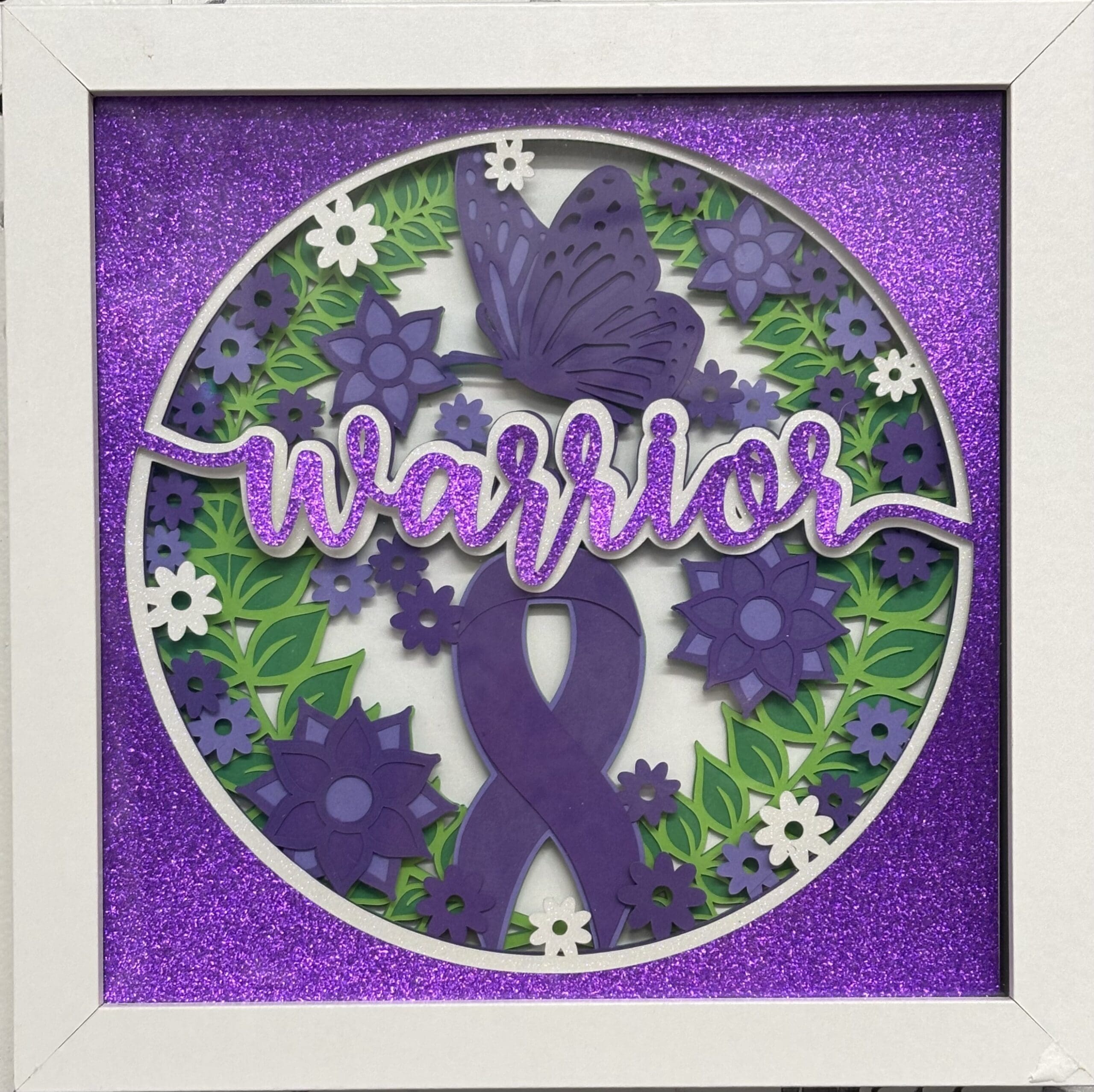 This Warrior Shadow Box is ideal for honoring personal journeys, supporting awareness causes, or gifting to someone who values meaningful handmade decor. It works beautifully in bedrooms, offices, living spaces, treatment centers, or awareness event displays. The purple awareness theme makes this Warrior shadow box especially fitting for cancer awareness, survivor recognition, or encouragement gifts.