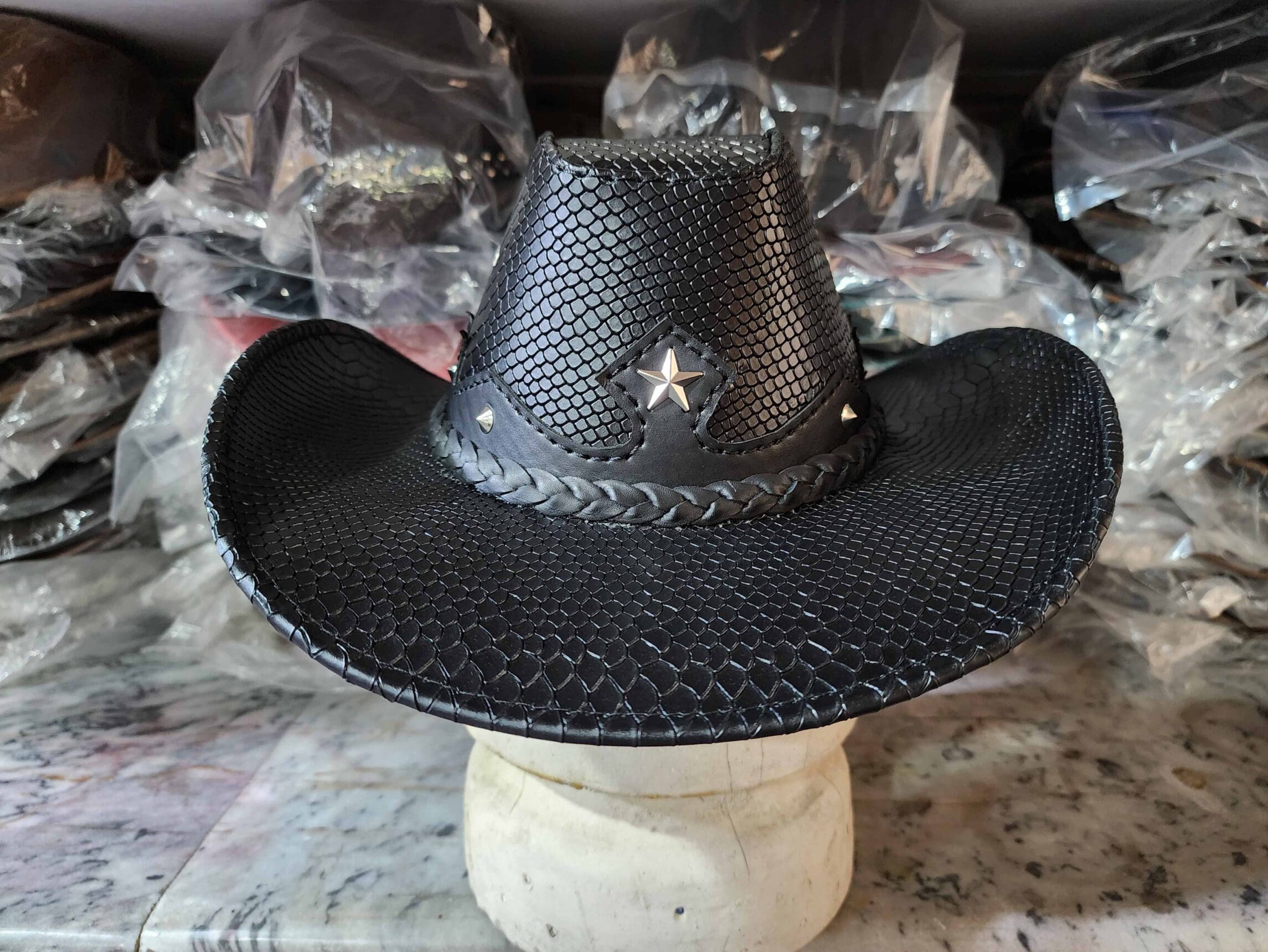 Western Icon Cowboy Anaconda Skin Texture Leather Hat