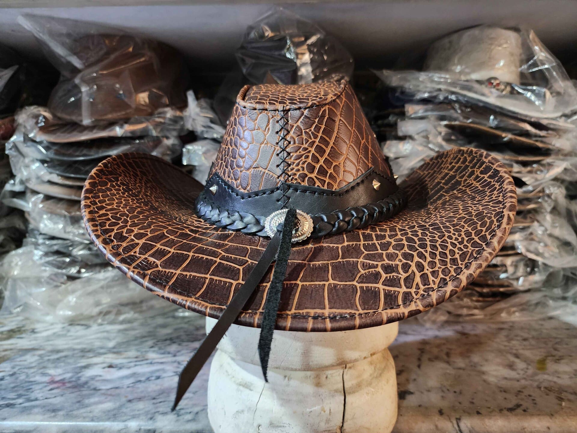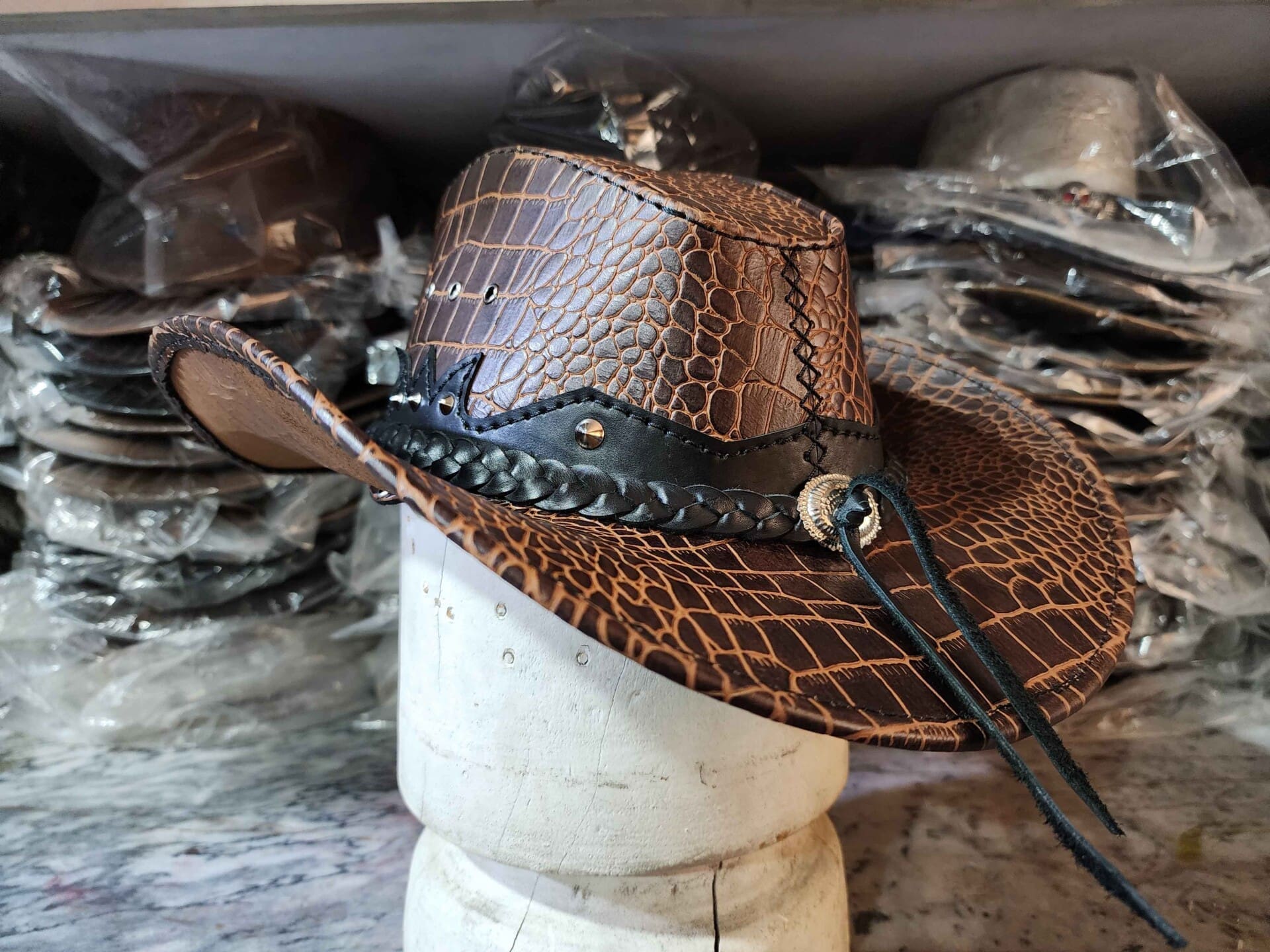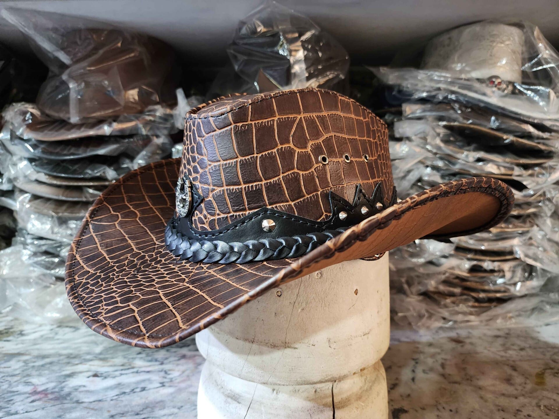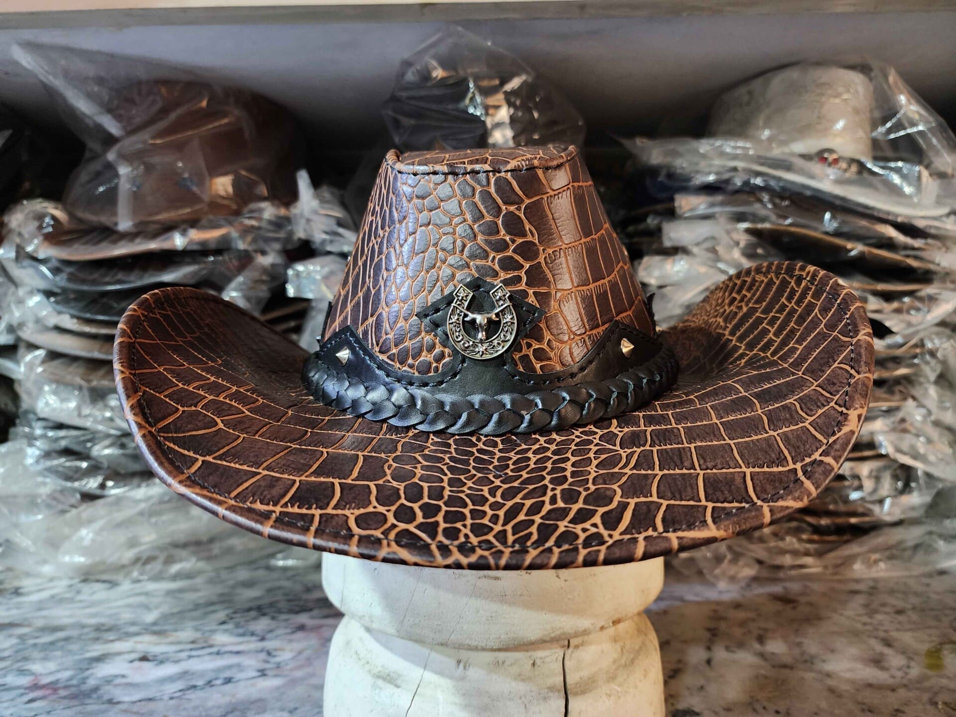 Western Icon Cowboy Crocodile Texture Leather Hat